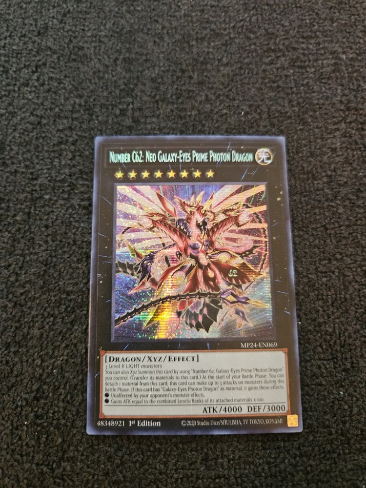 This card is absolutely stunning! The Prismatic Secret Rare finish makes Neo Galaxy-Eyes Prime Photon Dragon shine like a true collector's gem. The seller provides clear photos and fair shipping rates, plus they’re happy to answer any questions. A must-have for Yu-Gi-Oh! fans—highly recommended!