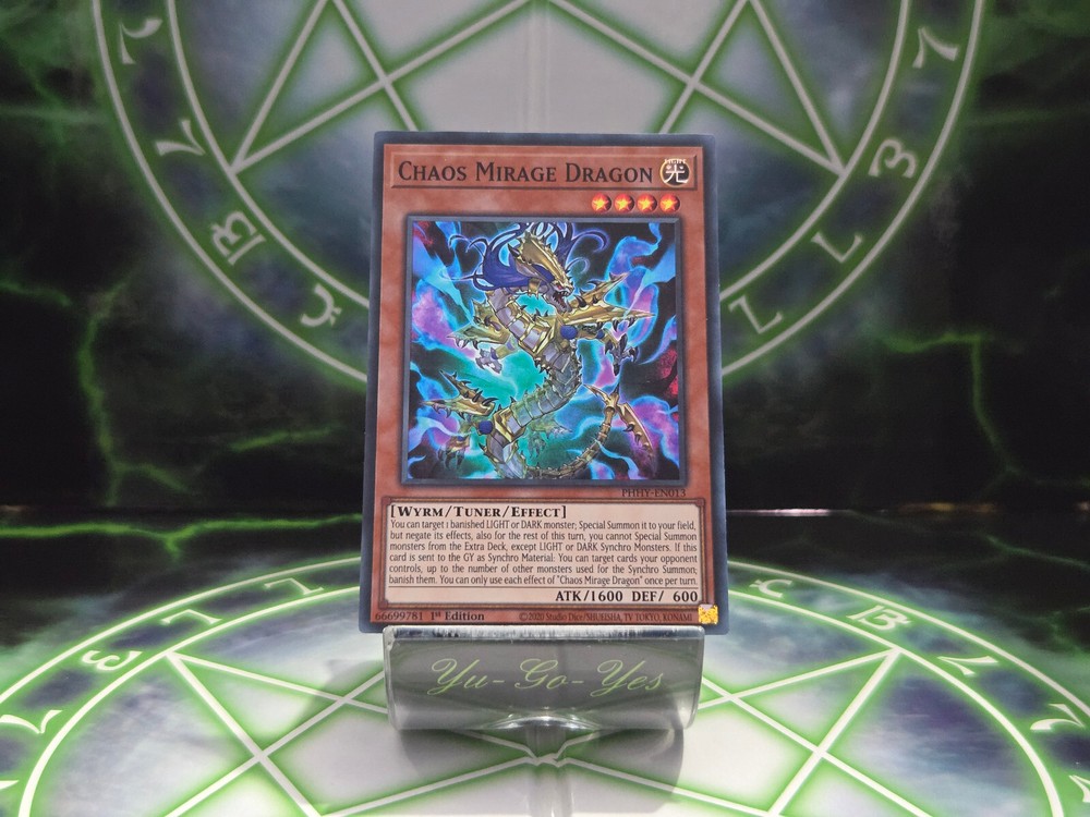 PHHY-EN013 Chaos Mirage Dragon Super Rare 1st Edition Near Mint Genuine Yu-Gi-Oh Konami cards. Will be posted in a card sleeve protected by a "do not bend" board backed Defenda envelope designed to provide the level of protection needed to ensure that your items arrive in the best possible condition. Yu-Go-Yes Card Condition Guide All cards are stored in card sleeves. Mint: Removed from packaging and placed in a sleeve (excellent condition). Near mint: Cards may have minor marks from storage (good condition). Used: Noticeable marks (playable condition). Many more items for sale. Feel free to look at all/other stock. (updated regularly) Happy to answer any questions.