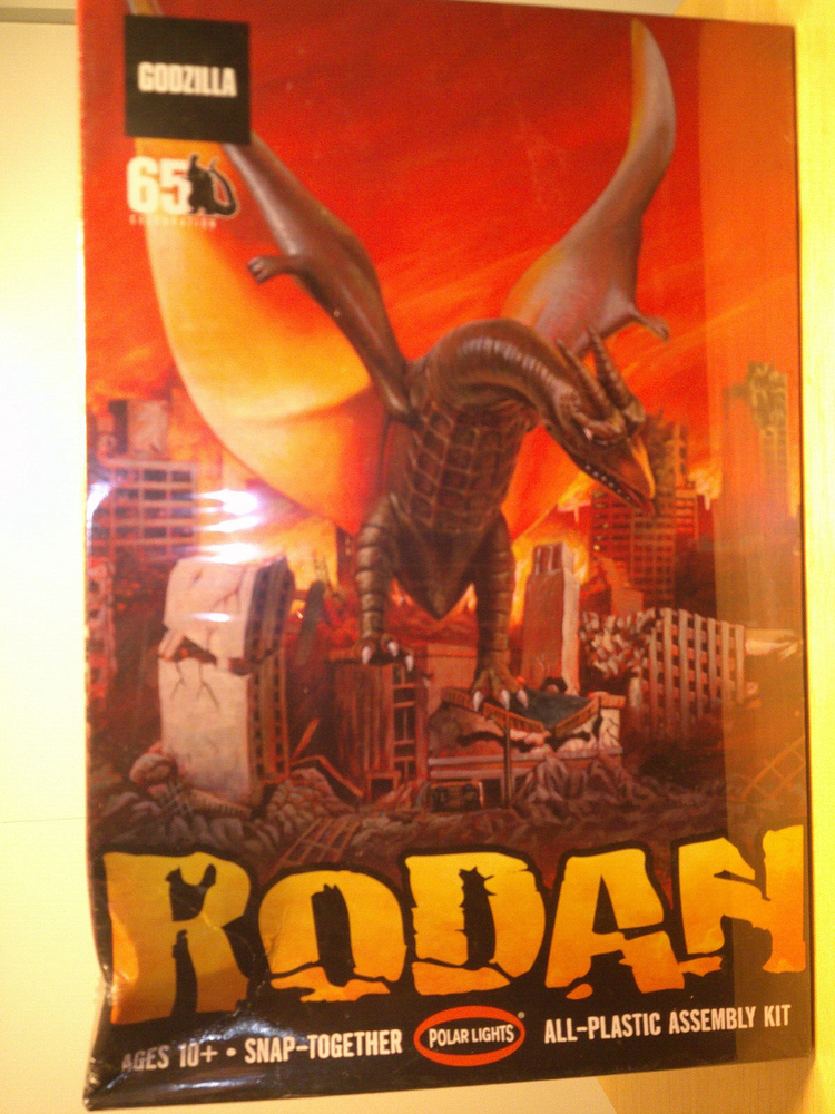 POLAR LIGHTS #963 SNAP TOGETHER PLASTIC MODEL KIT RODAN 11" TALL GODZILLA 65 CELEBRATION NEW IN DAMAGED BOX KIT INSIDE IS FINE...
