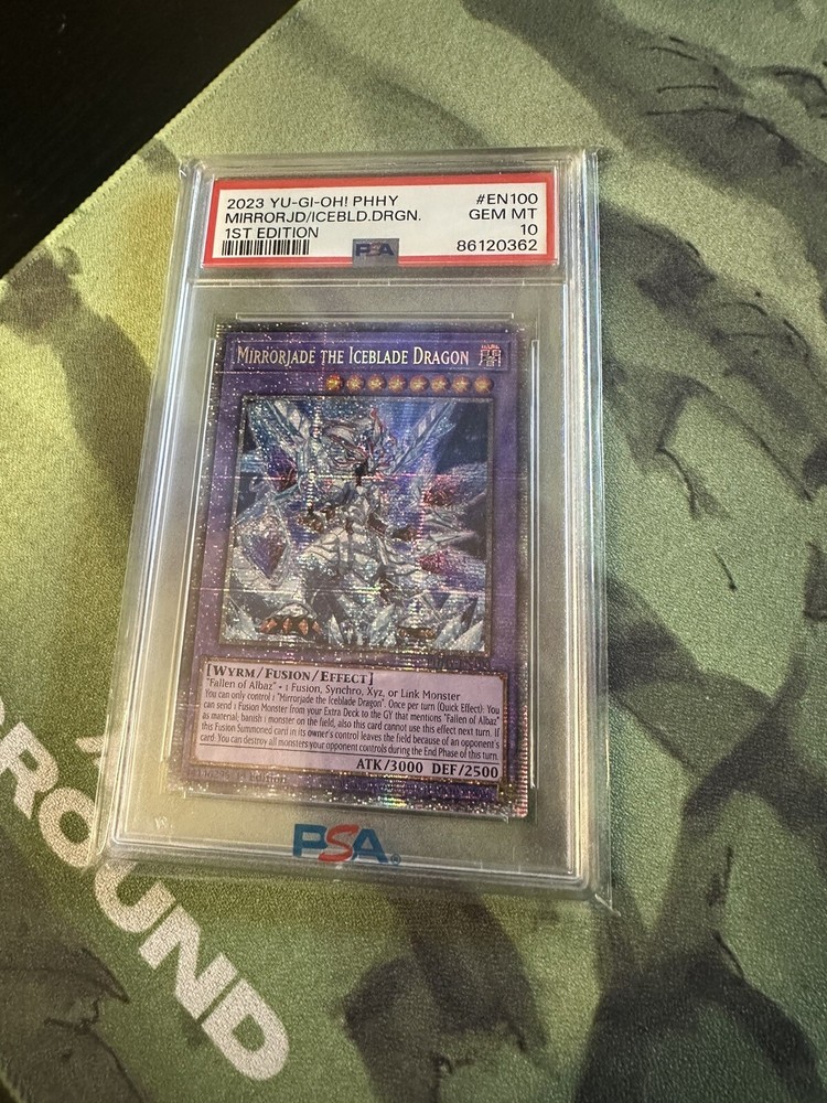 For those seeking a rare and valuable addition to their Yu-Gi-Oh! TCG collection, this PSA 10 GEM MT Mirrorjade The Iceblade Dragon Starlight Rare PHHY #EN100 card is a must-have. This card, with its stunning rarity and unique design, is sure to impress any collector.