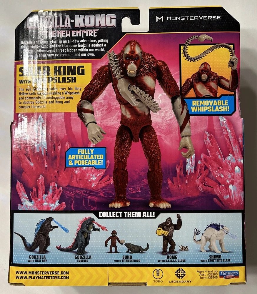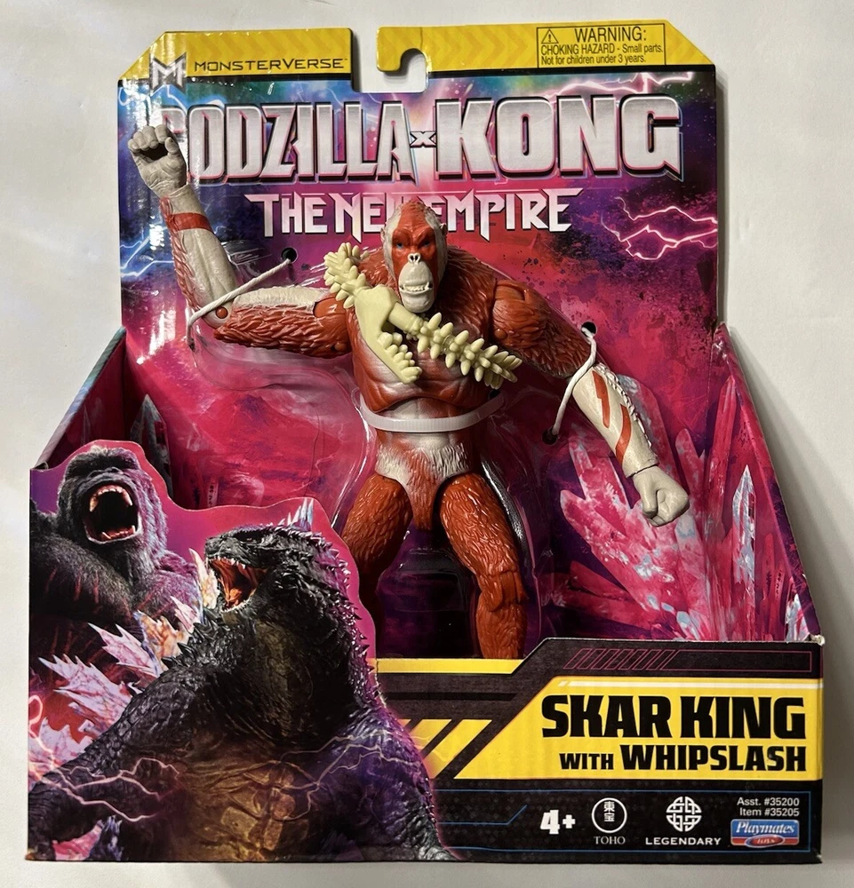 Own a piece of the epic battle between Godzilla and Kong with this Playmates Toys action figure from the newly released movie, Godzilla X Kong: The New Empire. This 6-inch Skar King figure comes with an adjustable Whipslash and is made of durable, multicolor plastic. The item is licensed by the Godzilla franchise and manufactured in China. Perfect for children aged 4 and above, this original action figure is not to be missed. Add it to your collection today and relive the excitement of the movie.