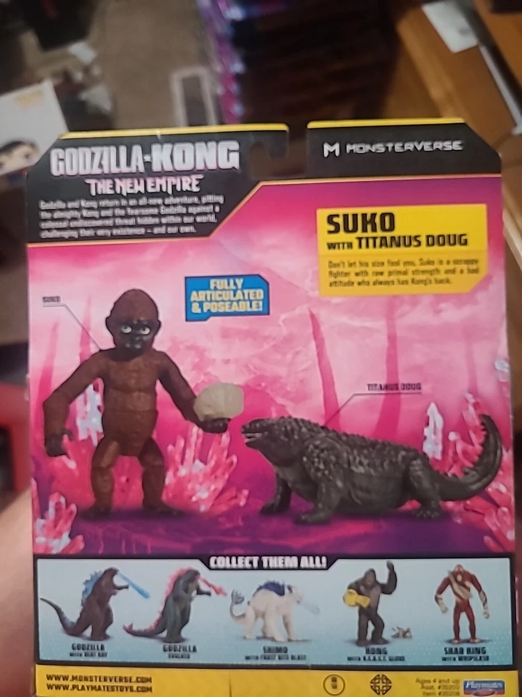 This Playmates Toys action figure is a must-have for fans of the Godzilla franchise. Featuring characters Suko and Titanus Doug from the upcoming film Godzilla x Kong - The New Empire, this 4" figure is brand new and manufactured in 2024. Perfect for collectors or kids who want to recreate exciting scenes from the movie, this toy is sure to provide hours of entertainment. Add it to your collection today!