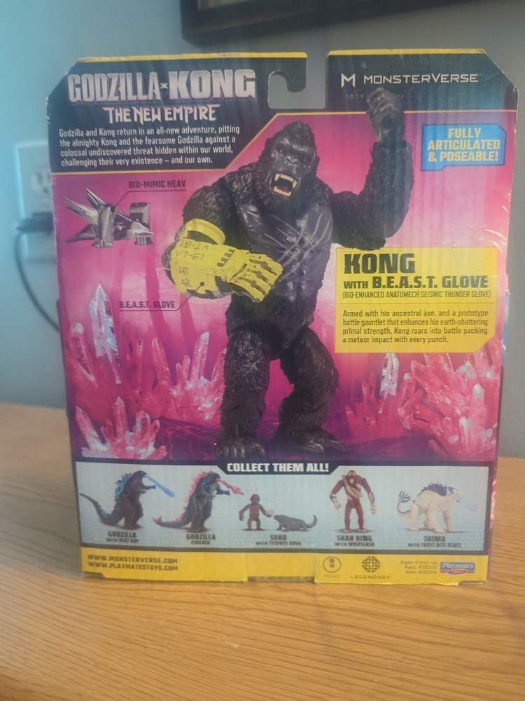 The Playmates Godzilla x Kong The New Empire Kong with Battle Axe 6" Action Figure is a collectible toy depicting the character Kong from the Godzilla franchise. This officially licensed product is manufactured in China and is part of a theme centered around Godzilla. The action figure stands at 6 inches tall and comes with a battle axe, ready for imaginative play or display. With a release year of 2024, this toy is sure to be a sought-after item for Godzilla fans and collectors alike. Front has a little bend in the cardboard
