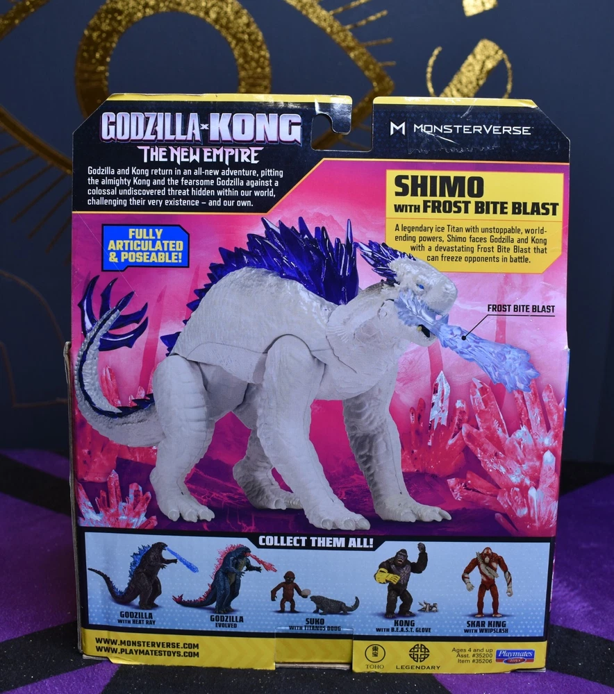 | Features | Fully Articulated & Poseable, Frost Bite Blast, Purple crystalline spines, New 2024 Godzilla x Kong movie theme packaging |