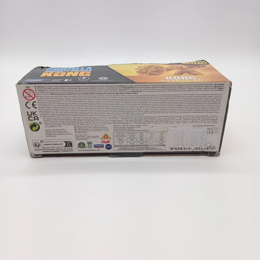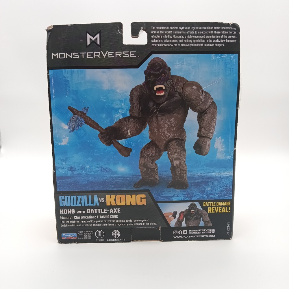 Unleash the thrill of the epic battle from "Godzilla vs. Kong" with this Playmates Toys Monsterverse action figure. Crafted with precision, the King Kong figure stands ready for display or to recreate the legendary showdown. Included is a battle axe, allowing fans to imagine the mighty Kong in the heat of combat. With its detailed design and dynamic articulation, this Kong action figure is a standout addition to any collection. Ideal for enthusiasts of all ages, from children to adults, this figure is part of the highly collectible Godzilla franchise. Made from durable plastic, it's a testament to the enduring legacy of these iconic monsters. The item, modeled as KONG, bears the MPN 39809 and was manufactured in 2022, ensuring its place as a contemporary piece of movie memorabilia. ********new old stock. box does show signs of wear***************************