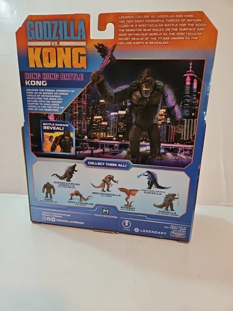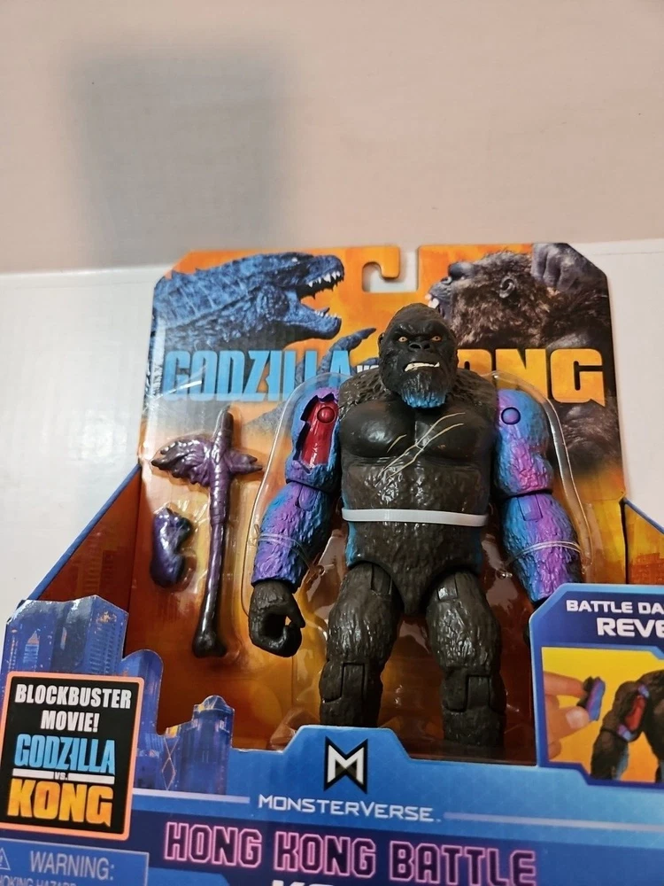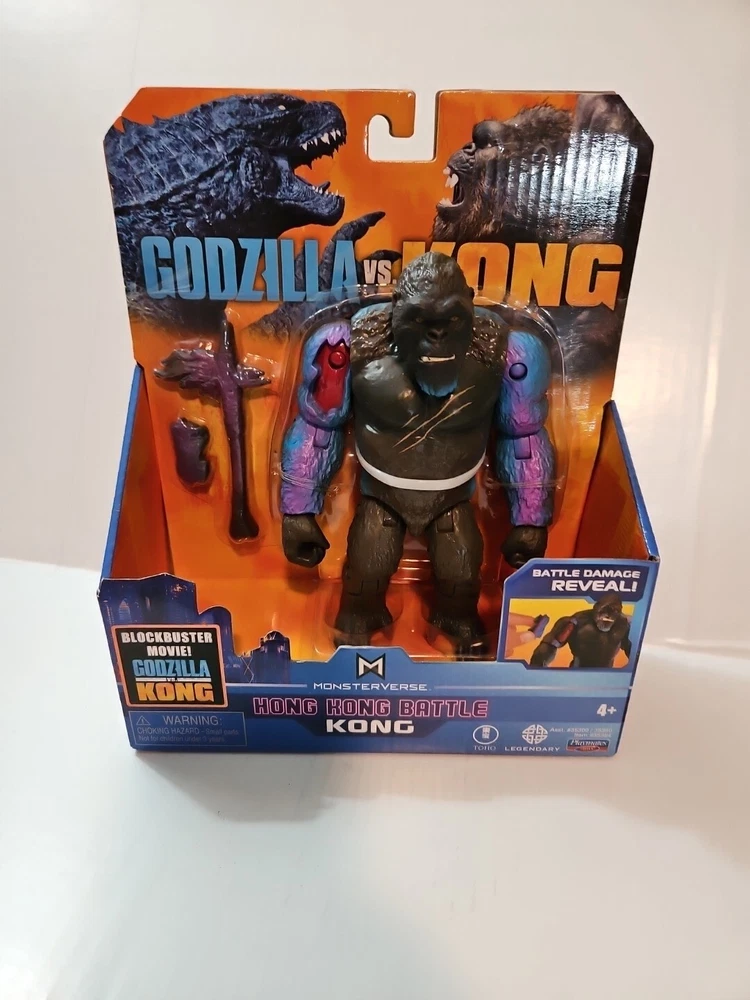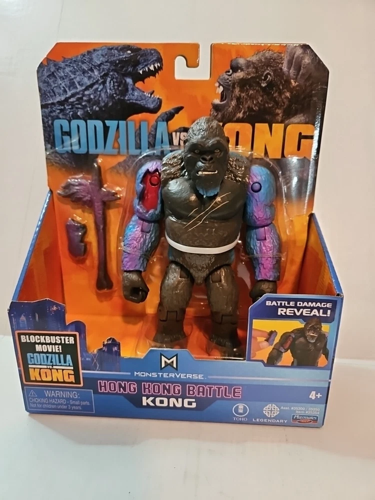 Playmates Monsterverse Godzilla vs Kong Godzilla Hong Kong Battle with Axe 6" King Kong With Battle Damage Arm. New Please see the pictures....