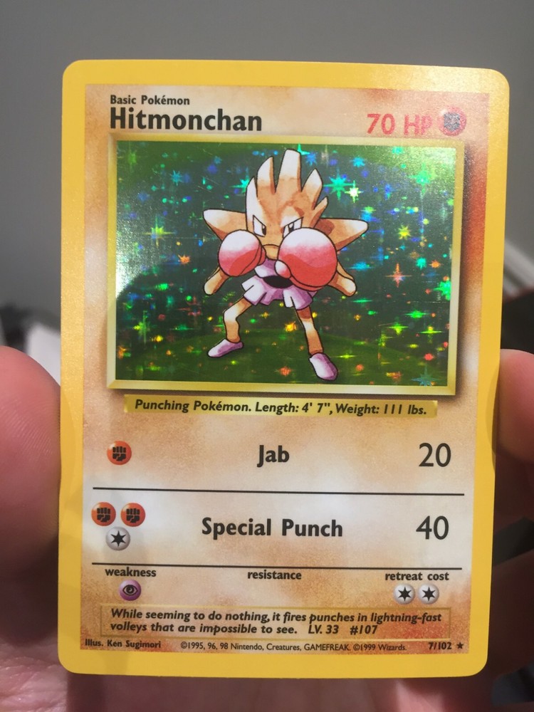 This Hitmonchan holo from the 1999 BASE set is a must-have for collectors! The card is in great condition, and the seller shipped it fast with tracking. Super rare find—super happy with this purchase! Check out their other listings too!