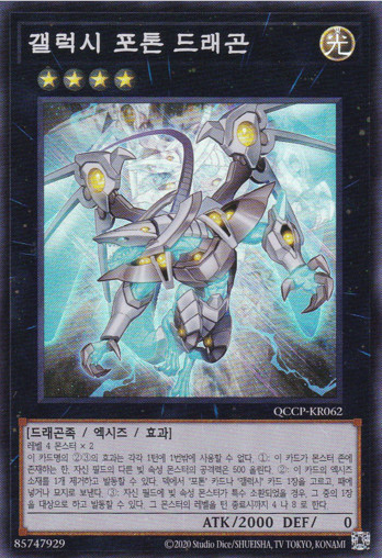 [QCCP-KR062] Super Rare "Galaxy Photon Dragon" Korean Product Description: [QCCP-KR062] Super Rare "Galaxy Photon Dragon" Korean Single Card + Sleeve + Top loader (Case) Mint Condition (Made in Korea) 100% Genuine Product of Konami (Korean Version) All singles cards are never used, fresh from the pack. Available for combined shipping (send invoice or partial refund after payment) Store Policy Items will be shipped from South Korea, 1 ~ 3 business days after order. All the items, we are selling, include manufacturers' warranty and do strict inspection & packaging before shipping. We use Korea Post / Rincos International Priority Airmail. All of our shipping provide tracking number. (Standard & Expedited) Standard: 10 ~ 20 business days (+ Tracking Number) Expedited: 5 ~ 10 business days (+ Tracking Number) We do accept all reasonable request and offer.