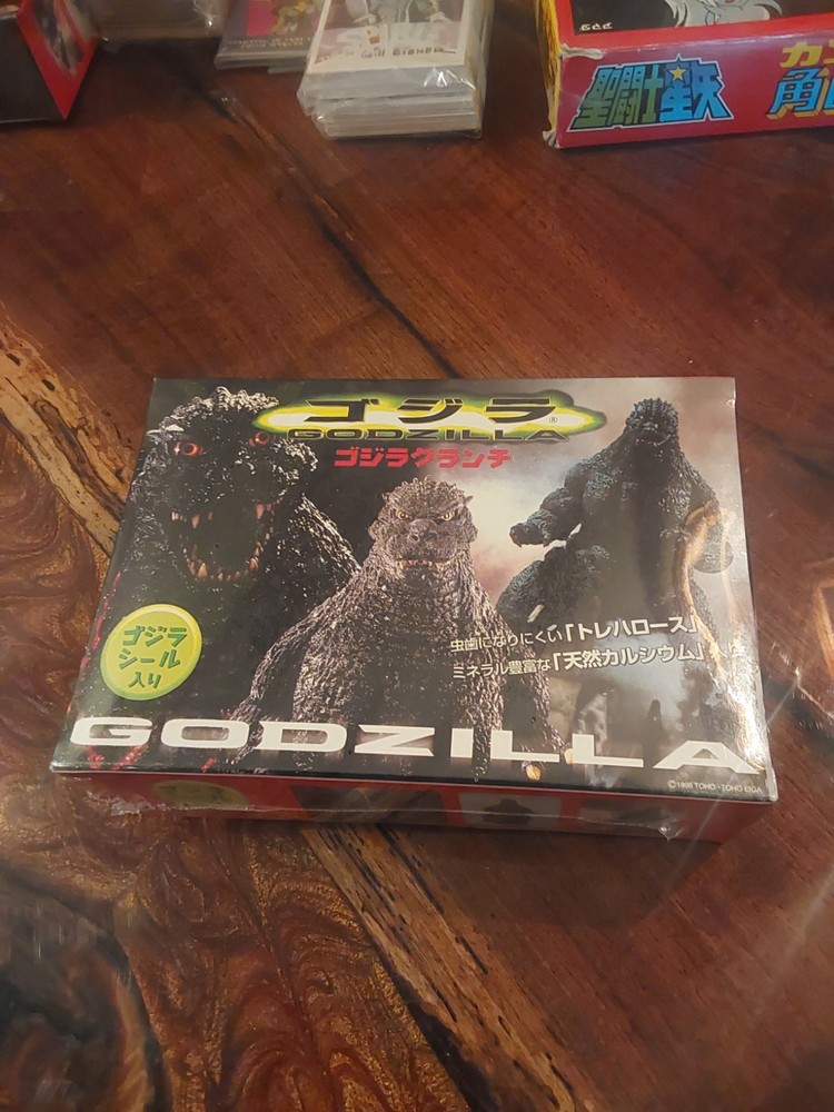 🦖Rare sealed box of godzilla crunch cookies bought in Japan by a family member who owned a comic shop. Unique quirky retro godzilla swag to add to your collection, comes with a mystery sticker inside the sealed box. Factory sealed! Do not eat! 🐉 🌟🌟check out our store for more great godzilla collectibles, models, toys action figures, memorabilia, anime and Manga, comics, video games and SO MUCH MORE🌟🌟 👀👁SEE PICTURES FOR CONDITION👁👀 🏡💯SMOKE FREE HOME💯🏡