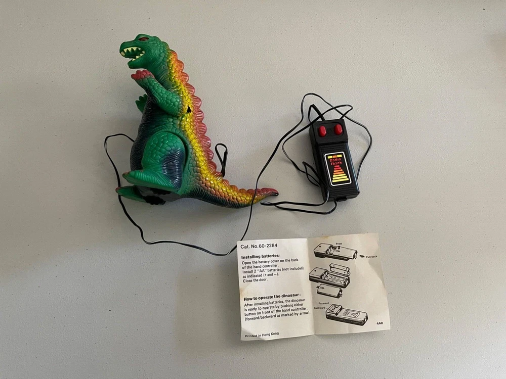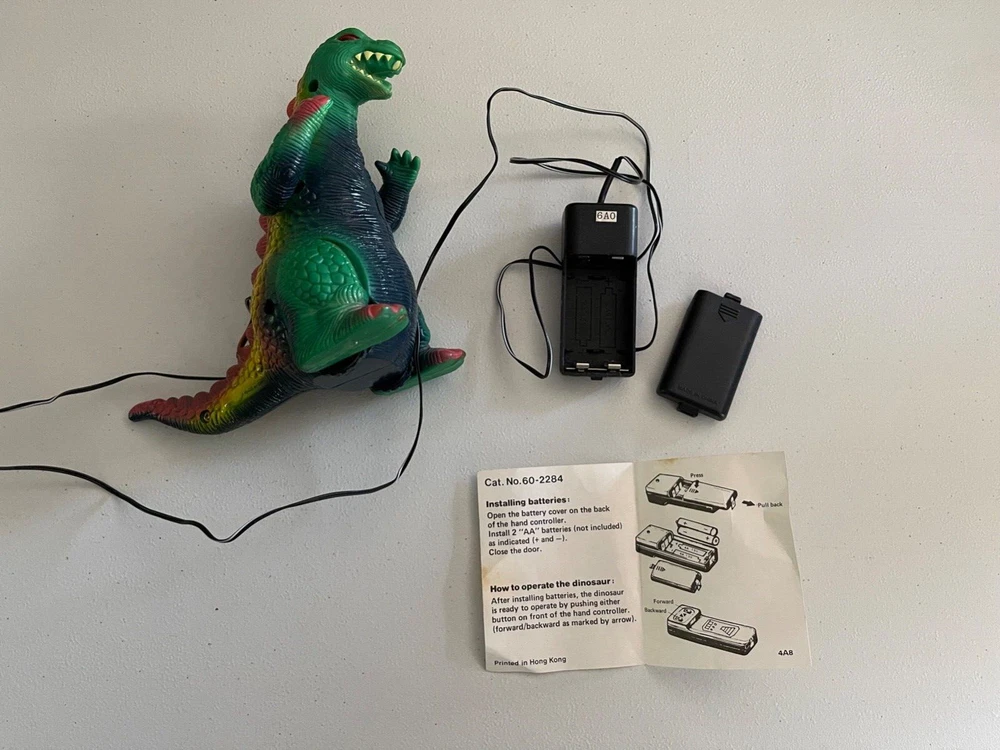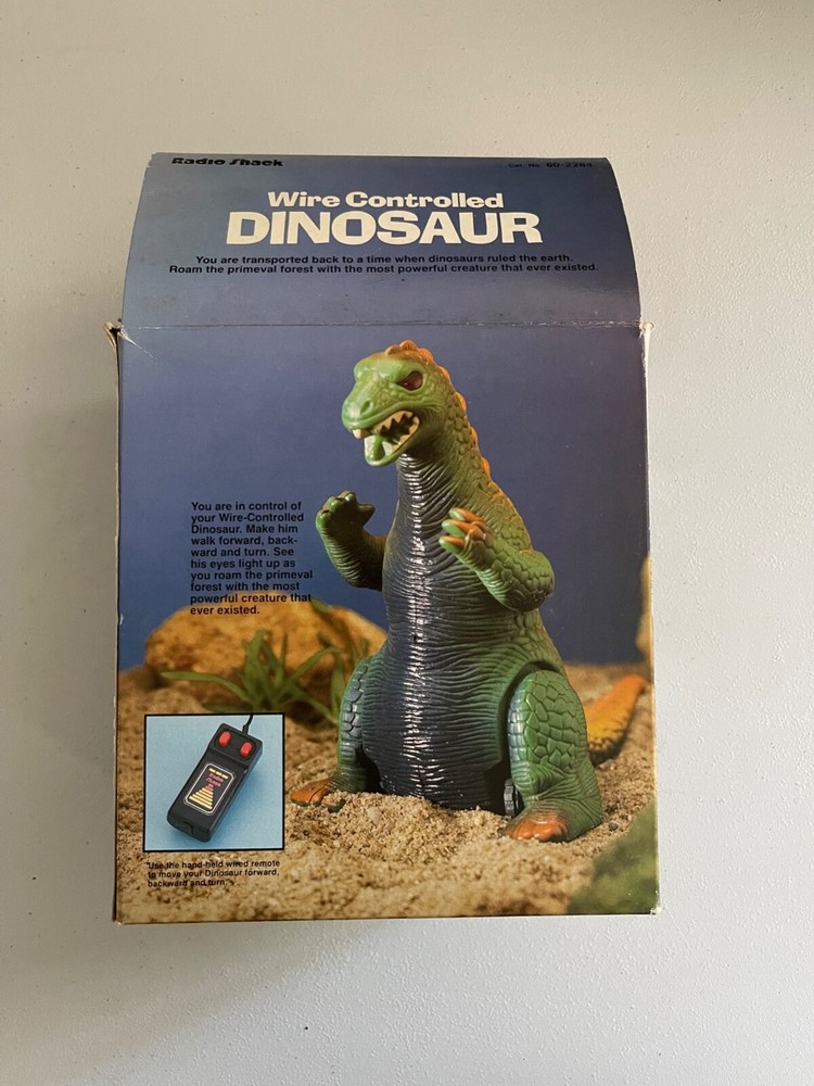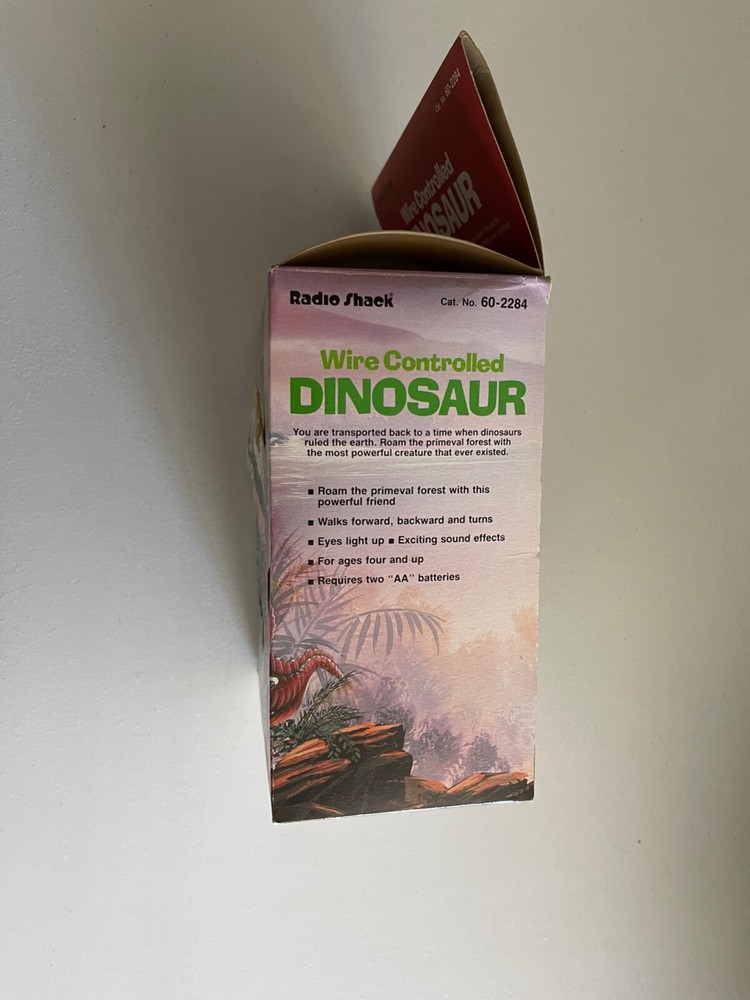 Up for sale, from a trusted eBay Seller! You are looking at a vintage Radio Shack Wire Controlled Dinosaur Cat. No. 60-2284 For ages 4 and up. Requires 2 "AA" batteries. NOTE: THIS INCLUDES DINOSAUR WITH ATTACHED WIRED CONTROLLER, BOX AND MANUAL. When tested with batteries, this moves and the eyes light up. However, this only seems to move in circles. THIS IS SOLD "AS IS". Please buy accordingly. THIS IS USED WITH ORIGINAL BOX! Overall, the dinosaur and controller appear to be in pretty good condition, considering they are over 30+ years old . The box shows some pretty heavy shelf wear from being in storage . NOTE: The front of the box is ripped, and some tape was placed on it to try and fix it. There is some wear/creasing on the corners/edges, etc. The box may also be somewhat dusty from storage. There may be some stickers/tape and/or sticker/tape residue on the box. This is considered USED. Please Note: This item ships either USPS Ground Advantage or USPS Priority Mail. See the attached Picture(s): Be sure to check out my other listings. Please Visit my Store: https://www.ebay.com/str/unclestebushouseofcollectibles SHIPPING INFORMATION: As a collector, I pride myself in packaging all of my collectible items very securely, so that they arrive to you in the same condition as shown on eBay. I know that shipping can be very tough on packages, so I try to “overpack” everything inside oversized boxes to allow for bubble wrap and packing paper to completely protect everything on its journey to you! Please check out my recent feedback to see what other buyers are saying about my packaging! I will always try to describe what shipping service will be used for each item and how it will be packaged. Please reach out to me for any questions or concerns! I can combine shipping with multiple items purchased. Please contact me so that I can provide a shipping quote for the combined shipping. INTERNATIONAL BUYERS: This item ships eBay International Shipping ONLY. ALL ITEMS COME FROM A NON-SMOKING, PET-FRIENDLY HOUSEHOLD. (UNLESS OTHERWISE NOTED) Please make certain you understand about this item before you buy/bid and inspect all pictures of the item. I try to give the most accurate description that I can for each item, so please ask any questions that you have, or request additional pictures. Buyer prepays item cost plus shipping. Any questions please message me on eBay. All questions cheerfully answered to the best of my ability. Standard eBay rules apply. Full payment must be received within 5 days of auction close, unless otherwise requested by buyer. Payment is accepted directly through eBay. Thank you for looking and happy bidding/buying! Uncle Chainsaw Stebus