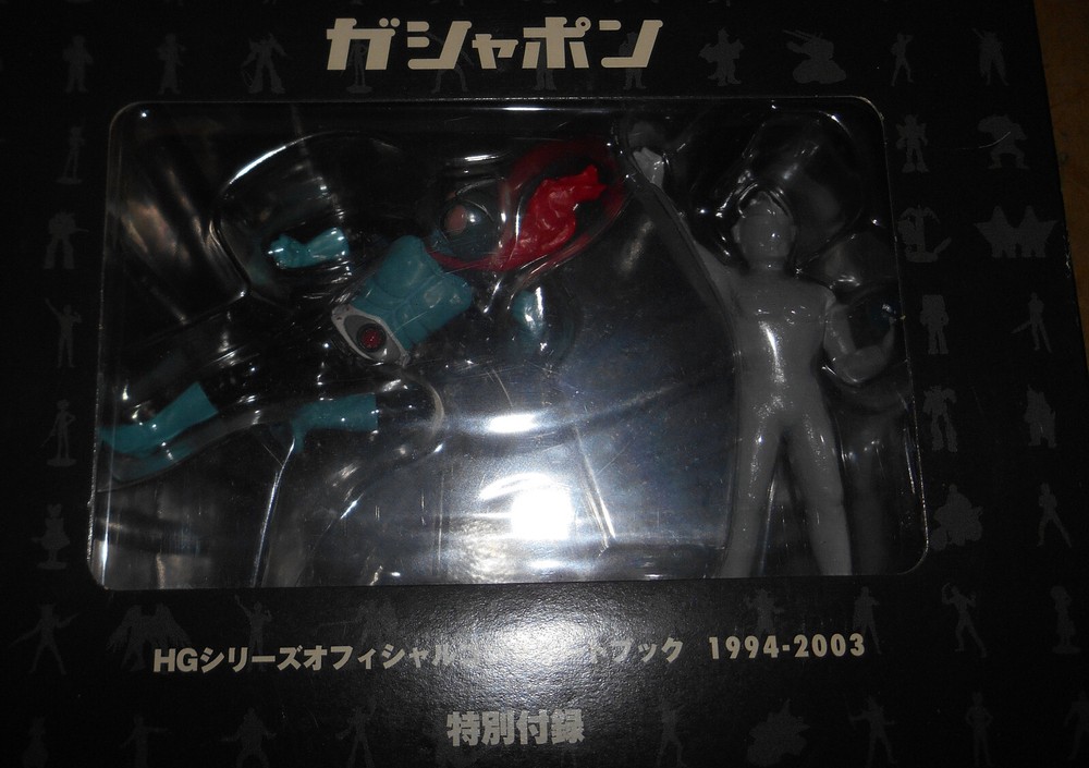 New in box as shown. Includes a 4" Kamen rider figure and base, and a 3" Ultraman figure and base. prpltb