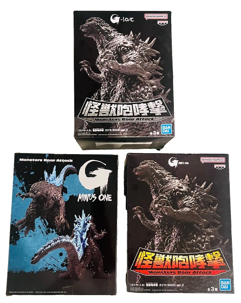 Set Of 3 Godzilla Minus One Monsters Roar Attack Godzilla 2023 Fig A B AND C Banpresto SEALED AND MINT IN BOX From Banpresto. Feel the ground shake with the Monsters Roar Attack Godzilla! This 6.3" PVC figure from the Minus One series features a detailed design and comes packaged securely in a printed closed box. Bandai Spirits Banpresto is proud to announce their newest release Monster Roar Attack Godzilla Minus One ver.2 Standing at approximately 6.3" tall, Godzilla Minus One is seen in their iconic pose Be sure to collect this and enhance your display with other incredible Banpresto figures! The product box will have a Bandai Namco warning label, which is proof that you are purchasing an officially licensed Bandai Spirits product Godzilla Minus One Brand new & in mint condition including the box. Please zoom in on the pictures to see condition details. ALL TOYS WILL BE PACKED WITH EXTREME CARE TO MAKE SURE YOUR ORDER ARRIVES SAFELY. WE WANT YOUR CUSTOMER EXPERIENCE TO BE AN OUTSTANDING ONE AND YOUR FEEDBACK TO REFLECT THAT. ANY PROBLEMS? CONTACT US. WE ARE ONLY HUMAN AND ERRORS OCCUR BUT WE HAVE A FANTASTIC TRACK RECORD OF FIXING EVEN THE SMALLEST PROBLEMS TO MAKE SURE THAT YOU'RE 100% SATISFIED WITH YOUR PURCHASE. GRADING OF PRODUCT IS ACCURATE AND CONSERVATIVE. WHEN YOUR ORDER SHIPS A TRACKING NUMBER WILL BE UPDATED INTO YOUR AUCTION. ITEMS WILL BE SHIPPED OUT UNLESS YOU PREFER TO PICK UP AT OUR RETAIL STORE TO SAVE ON SHIPPING FEES. WHEN IN NEW JERSEY STOP BY OUR RETAIL LOCATION AT 579 RT. 22 WEST, NORTH PLAINFIELD. WE HAVE BEEN AROUND SINCE 1990 AND HAVE A UNIQUE, WELL STOCKED COMIC SHOP. WE APPRECIATE YOUR PATRONAGE , THE JC COMICS STAFF BUYING, BUYING, BUYING, BUYING !!! WE ARE BUYING COMIC AND TOY COLLECTIONS OF ANY AND ALL SIZES (FROM 1930S TO PRESENT) PLEASE CONTACT ME VIA EBAY MESSENGER AND I WILL GET BACK TO YOU PROMPTLY