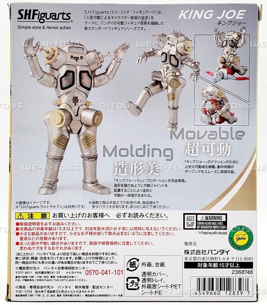S.H. Figuarts King Joe Ultraseven Action Figure Bandai 2017 S.H.Figuarts reproduces the amalgamation of Pedan technology! SHFiguarts King Joe! King Joe, which appeared in "Ultraseven", is now available as S.H.Figuarts. The asymmetrical modeling reproduces the impression of the character as seen during the shows broadcasting. The forehead and chest are made of clear parts. The clear chest parts are colored to resemble the luminescence of the character in the movie. Can be combined with the separately sold "S.H.Figuarts Ultraseven" to recreate scenes of fierce battles. Stands approximately 6.3" tall. 6.3 Inches Tall Highly Detailed Premium Articulation For ages 15 and up. B01N6WAS2V Brand new & in mint condition including the box. Please zoom in on the pictures to see condition details. Brand new, NRFB. Box is in mint to near mint condition. Thanks for shopping with Keith & Deb at We-R-Toys All of our items are from a clean, smoke free, pet free environment. We ship FAST and Pack with CARE