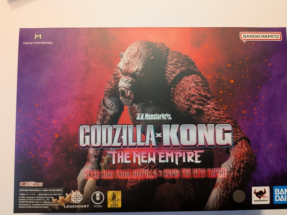 The S.H. MonsterArts 2024 Godzilla X Kong SKAR KING Figure by Bandai is a brand new collectible action figure featuring the character Skar King from the Godzilla X Kong movie. This multicolor plastic figure stands at 6 inches tall and comes with a whip accessory. The TV show King Kong and the movie franchise Godzilla X Kong are the inspirations for this action figure, perfect for fans of all ages 10 and above. The boxed packaging ensures the item is protected and ready for display.