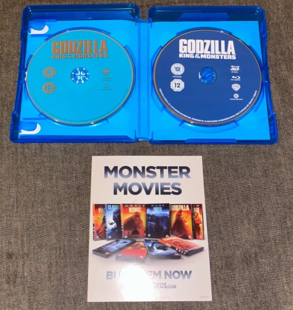 Item: Godzilla King of the Monsters Label: Warner Bros (2-disc set consisting of the 2D/3D version, insert, region free ) UPC: 5051892219914 Director: Michael Dougherty Country of release: UK, likely (2019) Condition: Discs are near mint, slipcase is VG++ Postage (tracking number): E verywhere: $15.00 Combined shipping possible: Next 6 Blu-ray discs in package ship for free. Overpaid postage will be refunded. European sales include 21% Dutch VAT.