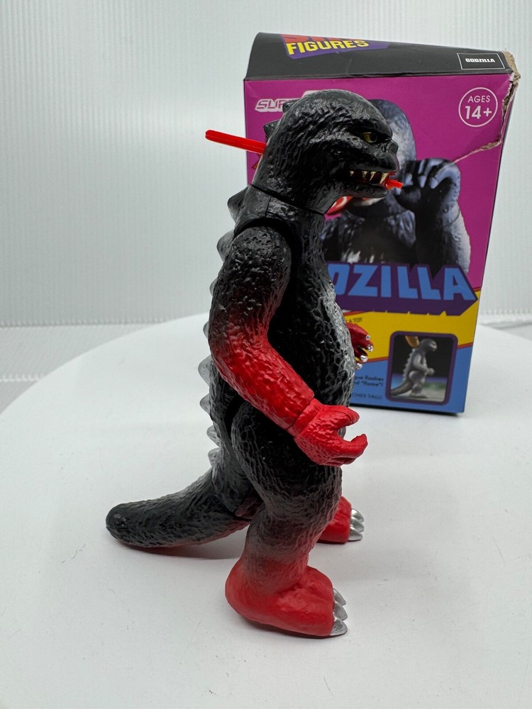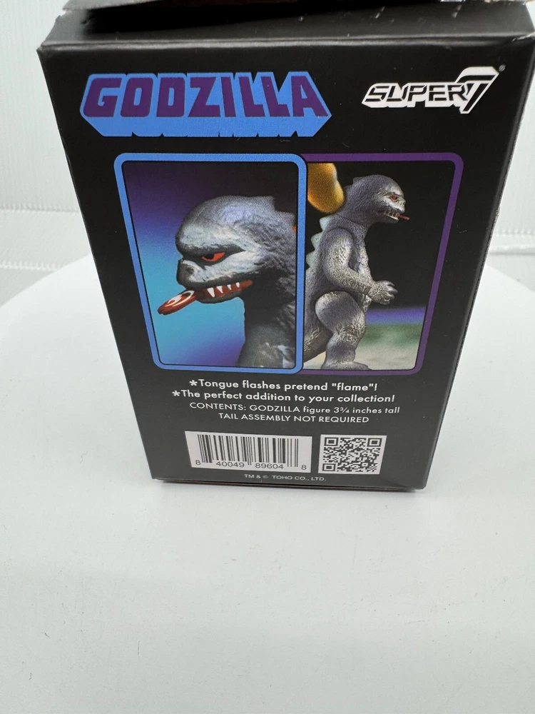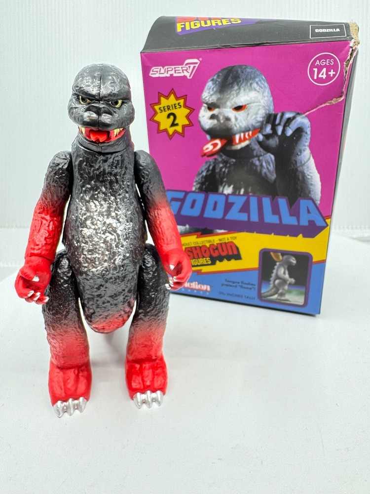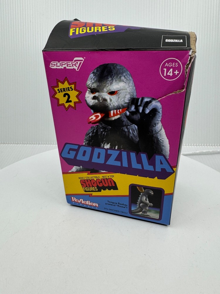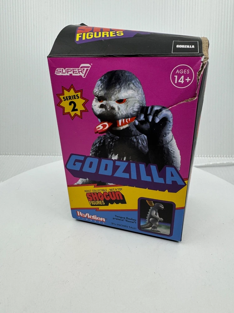 The product is a Super 7 Shogun Vintage 70s Godzilla Series 2 blind box figure measuring 3.75 inches. It belongs to the Godzilla theme and is part of a blind box series featuring various Godzilla figures. The brand associated with this product is Super 7.
