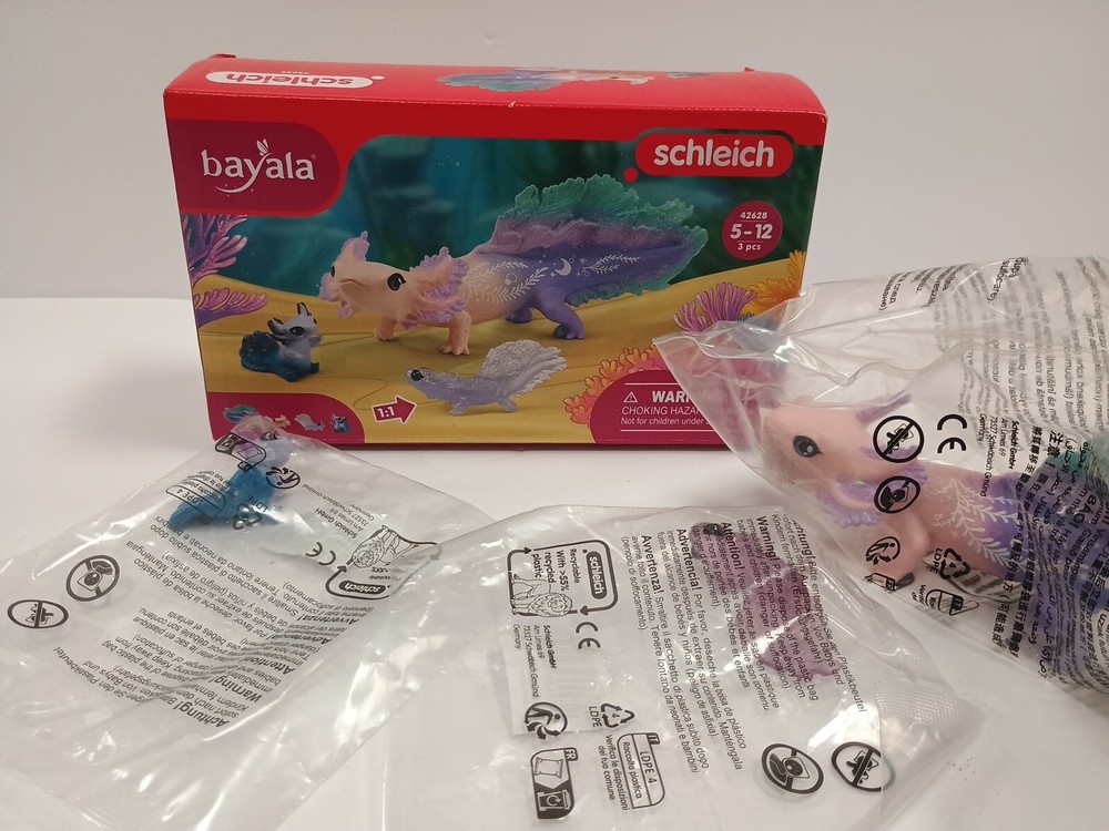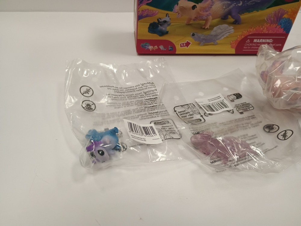 New in bags. Box opened to verify contents. Explore the depths of your child's imagination with the Schleich Axolotl Salamander Undersea Toy Set. Crafted by the renowned Schleich, this set promises to bring the wonders of the underwater world right into your home. Suitable for kids aged 5 to 12 years, it's an ideal addition to any young adventurer's collection. Complete with English language details, the set includes a beautifully designed axolotl salamander figure, perfect for imaginative play. With product dimensions of 7.5 x 7.5 x 4.5 inches and an item weight of just 4.2 ounces, it's lightweight and easy for little hands to handle. No need to worry, this aquatic creature is not just fun to play with but also durable, having been manufactured with the quality Schleich is known for.