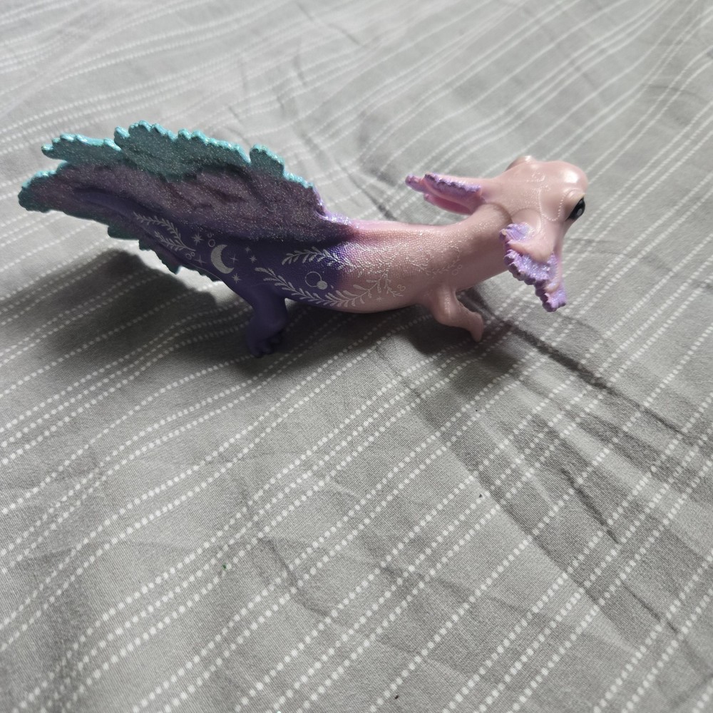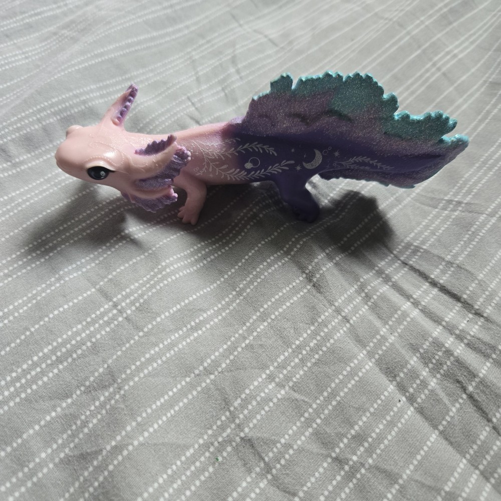 -SOLD AS IS- Unleash the wonder of the deep with the Schleich Axolotl Discovery , a vibrant addition to any underwater toy collection. This set features a single large Axolotl figure, meticulously crafted at 4.5 inches in size, showcasing the creature's unique bioluminescent colors that bring the mythical beast to life in your aquatic adventures. Made from durable polyvinyl chloride, the Schleich Axolotl is designed to withstand hours of imaginative play. Whether you're mapping the seafloor or creating your own undersea world, this toy promises to be a captivating companion for both collectors and young explorers alike.