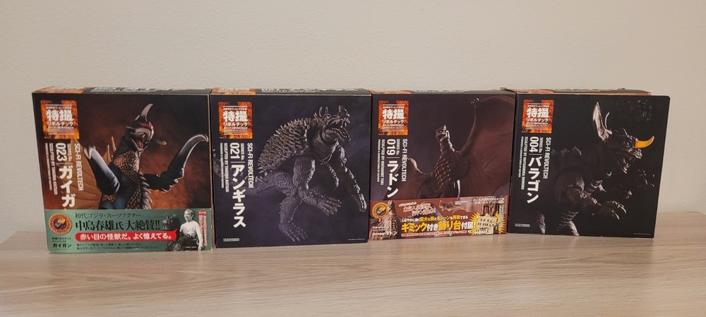 Sci-fi Revoltech Anguirus Rodan Gigan Baragon Kaiyodo Action Figure Set Boxes show some slight wear due to the age, but otherwise figures themselves are in excellent condition. Minty Mint! Great to go with any Godzilla, King Kong, Gamera, Ultraman, Pacific Rim and Kaiju related figure collection. If you want to see more like this Be sure to check out my other items. Thanks!