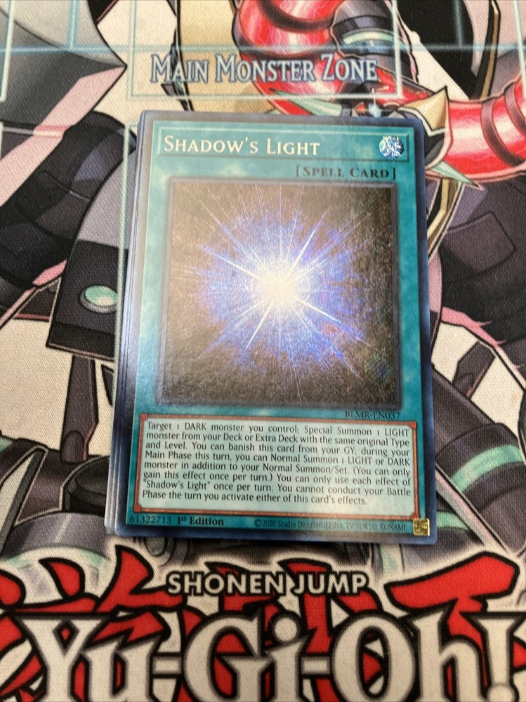 This Secret Rare 1st Edition Shadow’s Light looks amazing—clean edges, sharp foil, and vibrant colors. The condition is excellent, just as described, with no noticeable wear. A must-have for collectors and duelists alike! Packaged securely and shipped fast. Very happy with this purchase!