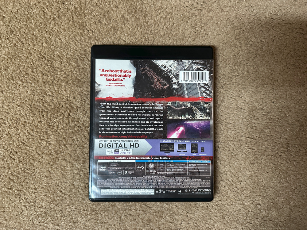 Shin Godzilla 2-disc set, U.S. edition. Out of print. DVD never played, Blu-ray only played a few times. Mint condition, no issues. (Note: no slipcase.) From personal collection. Will ship in box to prevent case from being damaged in transit. No returns, no international sales.
