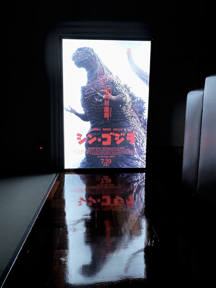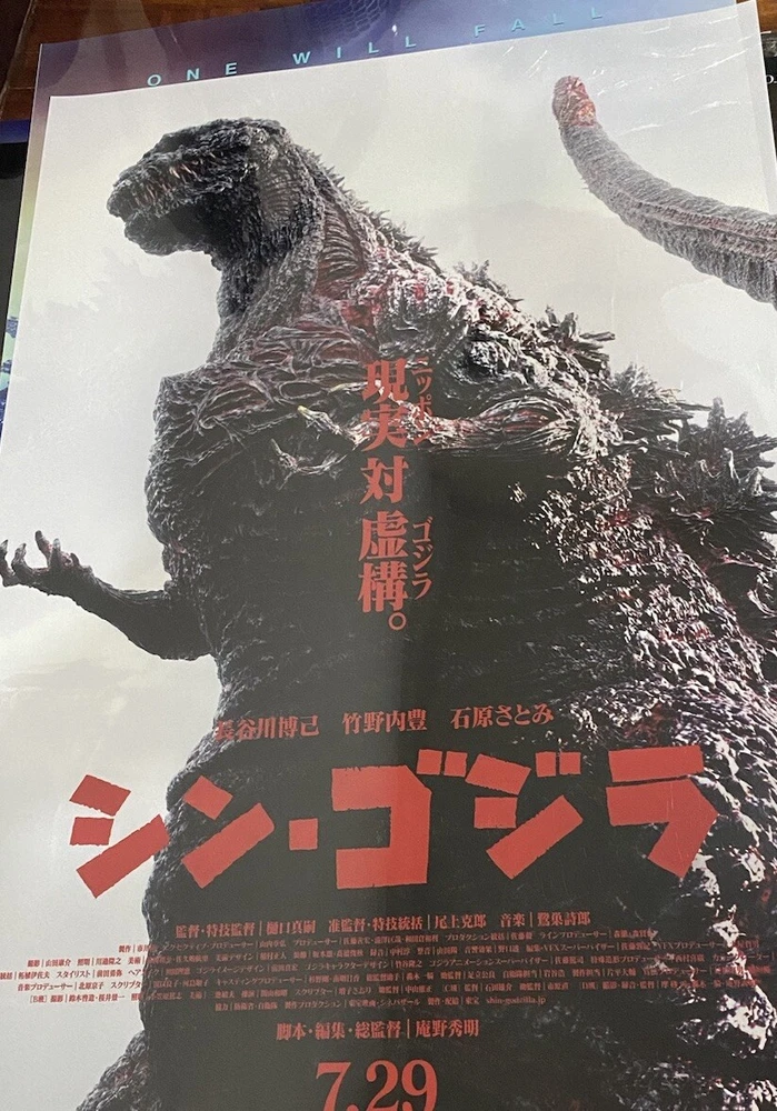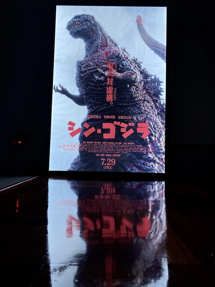 Japan Official promotional Film poster Shin Godzilla size 68x101.5 cm. (27”x40”)this product is produce for put in light box in front of theater. This is an 2 side rolled poster from the film. The back side of the poster is mirror images of the front for theater back lit poster case display purposes.
