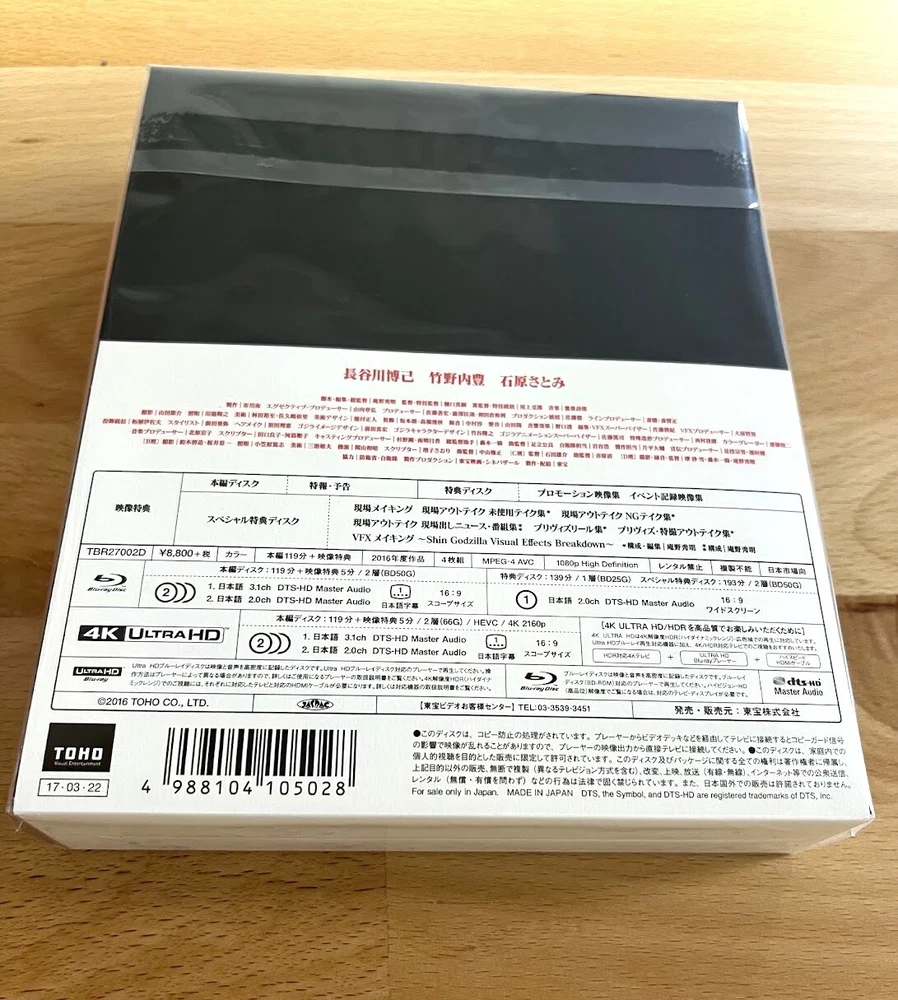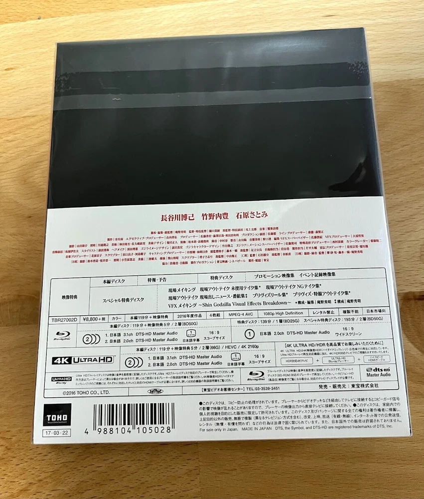 Shin Godzilla Blu-ray Special Edition 4K Ultra HD Blu-ray included 4-disc set Description Condition: New Shin Godzilla Blu-ray Special Edition 4K Ultra HD Blu-ray included 4-disc set [Disc]: 1 4K ULTRA HD, 3 Blu-ray Disc Videos (2 main discs + bonus disc + special bonus disc) ・Screen size: Cinescope size ・Audio: Japanese 3.1ch dts-HD Master Audio/Japanese 2.0ch dts-HD Master Audio ・Subtitles: Japanese subtitles [Bonus DISC Blu-ray] ・Promotional video collection ・Campaign video collection [Special bonus DISC Blu-ray] ・Making of ・Outtake ・Privis reel ・Privis outtake ・CG making Payment Please pay within 5 days after the auction closed. Shipping Additional fees will be charged for "Remote Delivery Locations." From the viewpoint of the global environment, we reuse used cardboard boxes and cushioning materials for packing. We would appreciate your understanding in this regard. About other area, please ask me. When you purchase two or more my items, I can send them together and discount shipping cost. Returns Returns are accepted ONLY if the item was not the item described. International Buyers - Please Note: * Import duties, taxes and charges are not included in the item price or shipping charges. These charges are the buyer's responsibility. * Please check with your country's customs office to determine what these additional costs will be prior to bidding/buying. * These charges are normally collected by the delivering freight (shipping) company or when you pick the item up - do not confuse them for additional shipping charges. * We do not mark merchandise values below value or mark items as "gifts" - US and International government regulations prohibit such behavior.