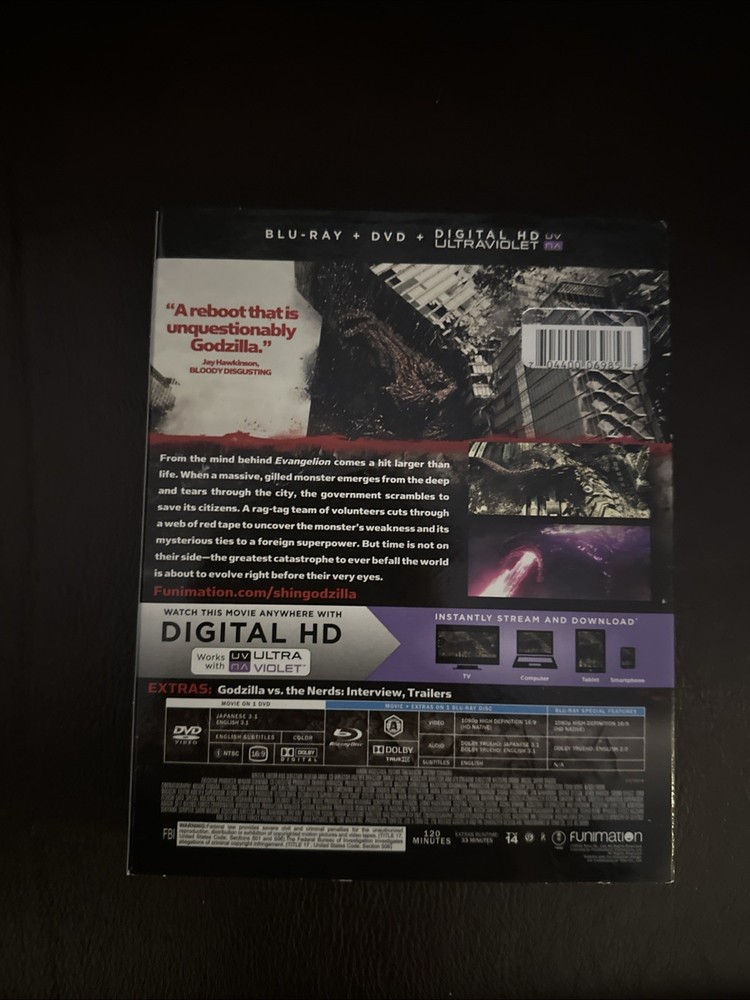 The Shin Godzilla Funimation Blu-Ray with Slipcover from 2017 is a valuable collector's item for fans of Japanese sci-fi. This out-of-print edition features the popular film directed by Shinji Higuchi and Hideaki Anno, with an aspect ratio of 1.85:1 and a run time of 120 minutes. The Blu-Ray comes in an NTSC video format with English subtitles, offering an immersive viewing experience for fans of the genre. The Blu-Ray disc includes special features and is housed in a Blu-ray case, making it a must-have for any movie enthusiast.