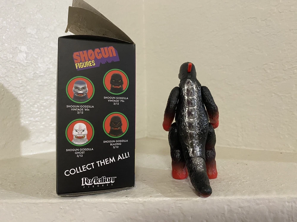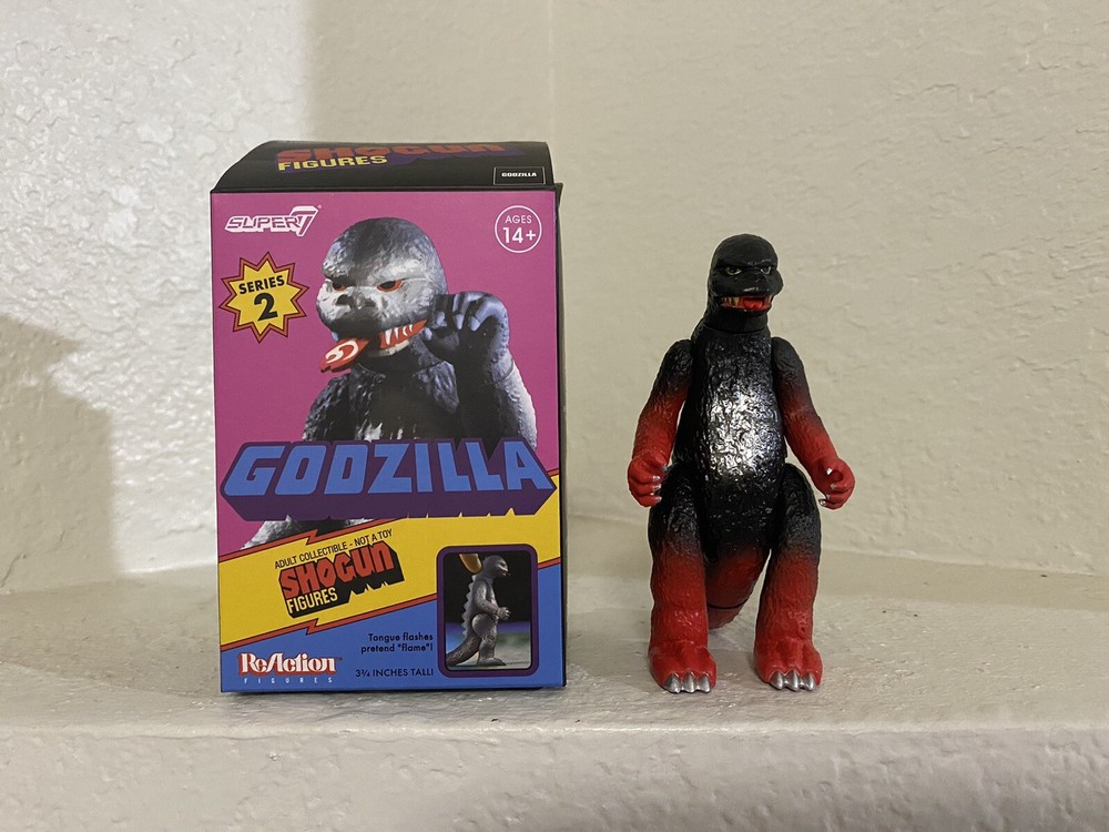 Shogun Warriors Vintage ‘70s Sofubi Styled Godzilla ReAction Series 2 Blind Box released by Super7 in red, black, and metallic silver colorway. RARE and BRAND NEW in box.