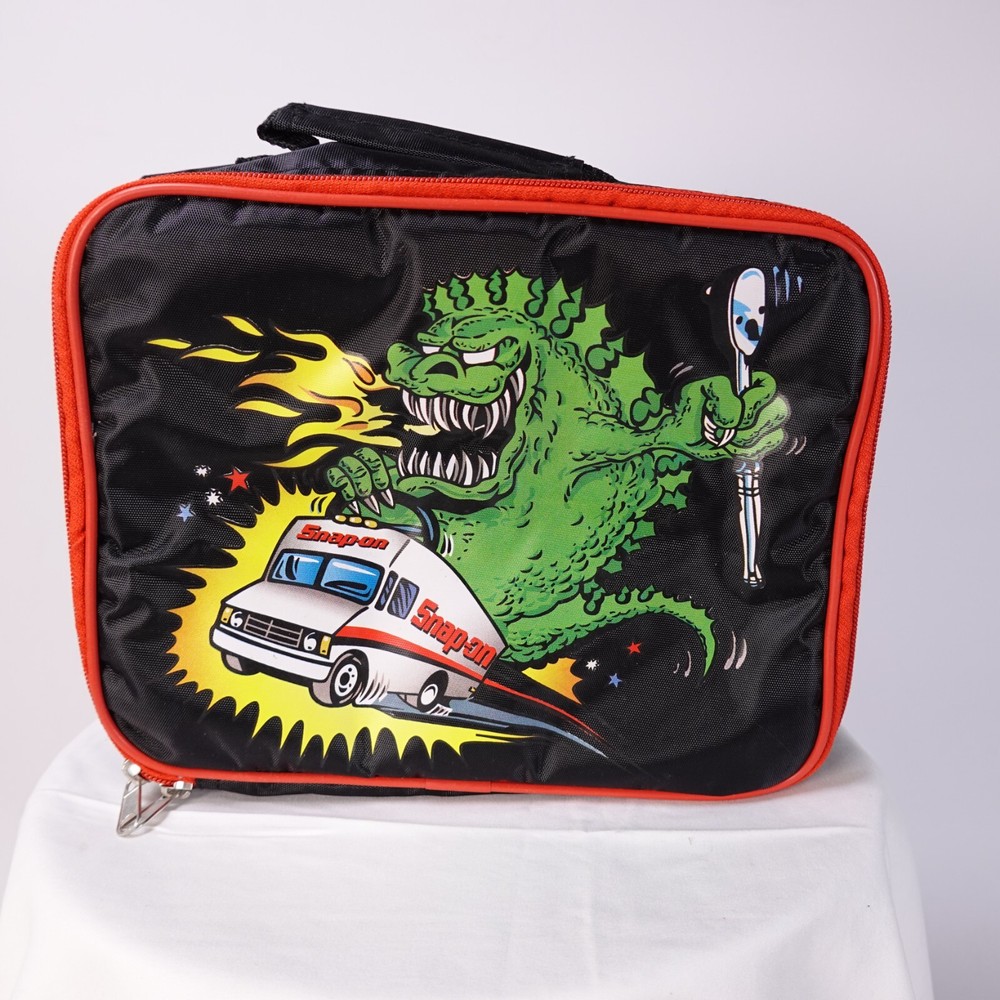Snap On Godzilla Lunch Box New. This is a great lunch box for the kiddo's. It has the Snap On truck and Godzilla. This is a new lunchbox.