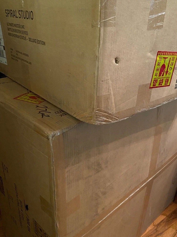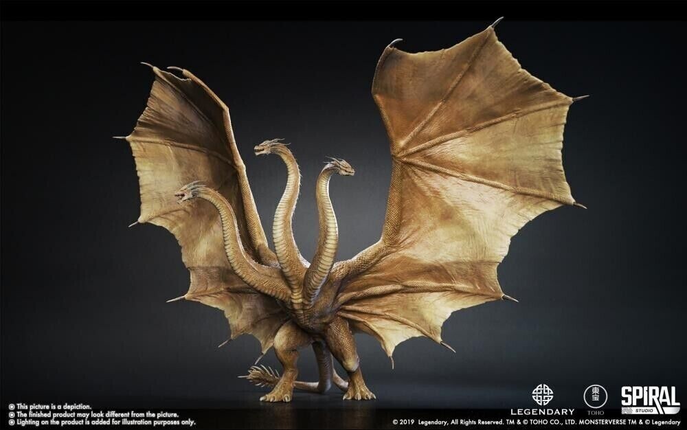 "A great dragon, who fell from the stars. A hydra, whose storms swallowed both men and gods alike." King Ghidorah, known to Monarch as 'Monster Zero', is an alien life form with unknown origin. Yet ancient civilization whispered an unspoken name of this evil incarnation through millenia of fear and terror, passing only a myth of the great dragon who fell from the star. Everywhere the three-headed devil travels, he brings an otherworldly thunderstorm, causing a hellish sight of destruction in his path; truly the avatar of horror deserved the title of 'Living Extinction Event', a false king to all titans. Spiral Studio proudly presents the first character of the series DX-KGS002: King Ghidorah Deluxe Edition Edition from Godzilla: King of the Monsters. King Ghidorah is sculpted and painted with an aim to stay true to the details depicted in the actual film. Standing at almost 35 inches tall, this King Ghidorah Statue is the ultimate piece of art for all Kaiju fans!