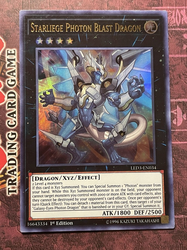 1x Starliege Photon Blast Dragon (LED3-EN034) Ultra Rare 1st Edition. Condition is very lightly played. Shipped with USPS. Fast shipping with tracking and will be sent in a top loader. Thank you!...