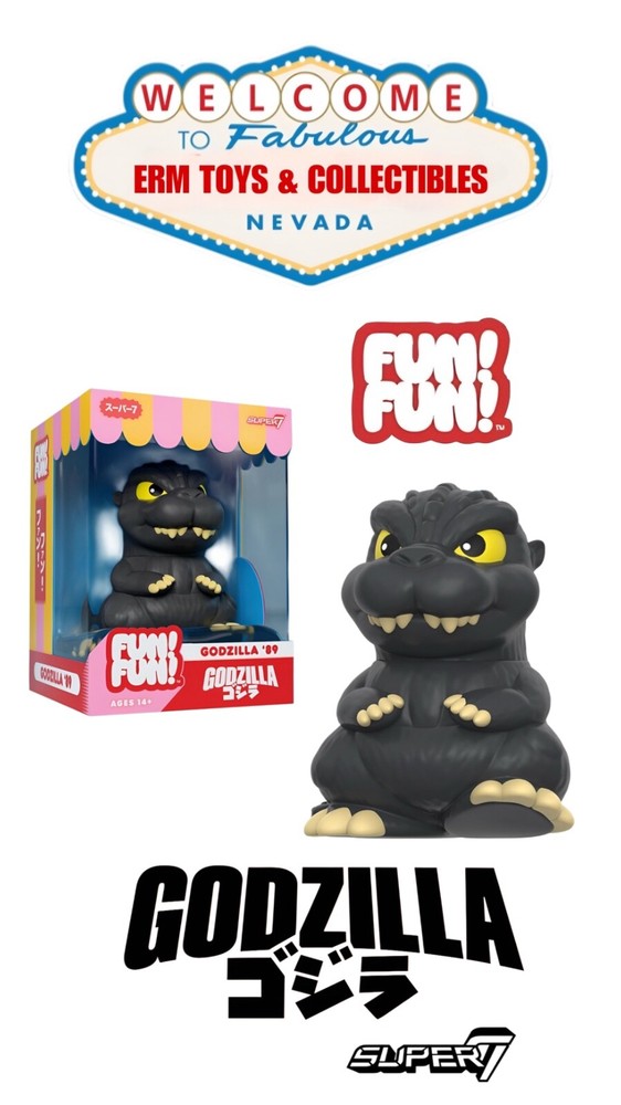 Super7: FUN! FUN! Toho - Godzilla '89 Collectible Vinyl Figure Godzilla has awakened from its volcanic prison and is on its way to Japan, leaving a trail of…cute in its wake! This action figure is inspired by the vintage Japanese toys of the past and the Heisei-era film Godzilla vs. Biollante (regarded as one of the most iconic versions of the King of the Monsters). Following the cute, minimal aesthetic of Super7's Mascot Vinyl figures, the new 5” tall, 2-part vinyl Godzilla FUN! FUN!™ figure is crafted from premium soft vinyl. Packed in delightfully colorful, collector-friendly window box packaging, each FUN! FUN! figure is a must-have for any kaiju collector and the perfect gift for Godzilla collectors or Toho fans. Grab yours today! Super7 makes retro collectibles, vintage toys, and nostalgia gifts for pop culture fanatics and collectors. We grew up with giant monsters, comic books, punk, science fiction, skateboarding, robots, and rebellion. No one made what we wanted. So, we made it ourselves. Please Note The item is boxed and displayed in its original packaging Although there may be some slight discoloration and or minor flaws, the box remains in great condition overall. Legal Disclaimer Every item undergoes thorough inspection and verification before being shipped. While we strive to meticulously select high-quality merchandise, it's possible that you may receive a package with minor flaws. These imperfections may include shelf-wear, creases, or slight variations. Additionally, there may be minor issues with paint or flocking. Please note that we are unable to facilitate exchanges solely due to such imperfections. We appreciate your understanding.