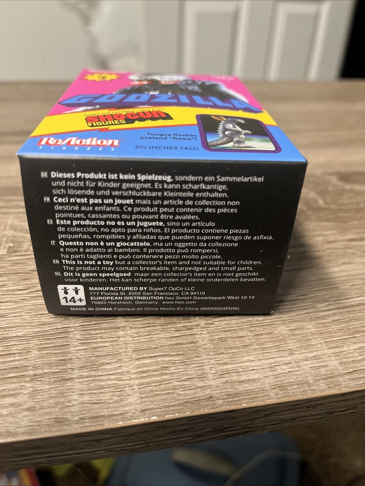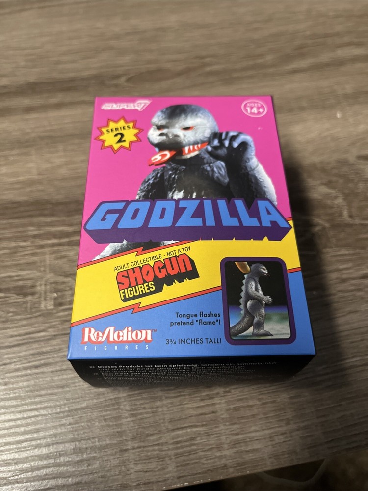 Sealed and unopened. The Super7 ReAction Shogun Godzilla Vintage 60s Blind Box Figure Series 2 is an action figure toy featuring the character Shogun Godzilla from the Godzilla franchise. Manufactured in 2024, this plastic figure is part of a blind box series and comes unopened. With movable flame features, this collectible item appeals to fans of Godzilla and vintage toys. Perfect for collectors or fans of the Godzilla series, this figure brings the iconic character to life in a unique and nostalgic way.