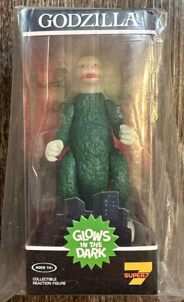 Offered here is a Super7 Reaction Shogun Godzilla Glow in the Dark 4" Figure NYCC 2021 Exclusive. It is brand new and still sealed int original box and bag. Features: From Super7 and originally made available at New York Comic Con 2021 3.75" scale perfectly miniaturized match of the 1960s Glow Aurora model kit Packaged in a box paying homage to the art from the original Limited Edition Thanks for looking