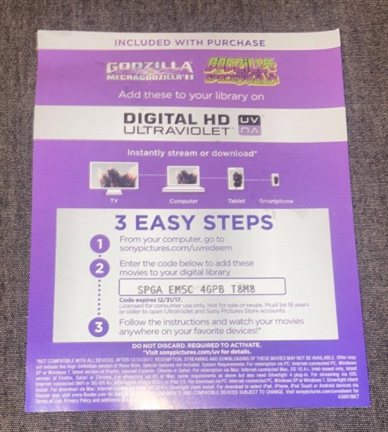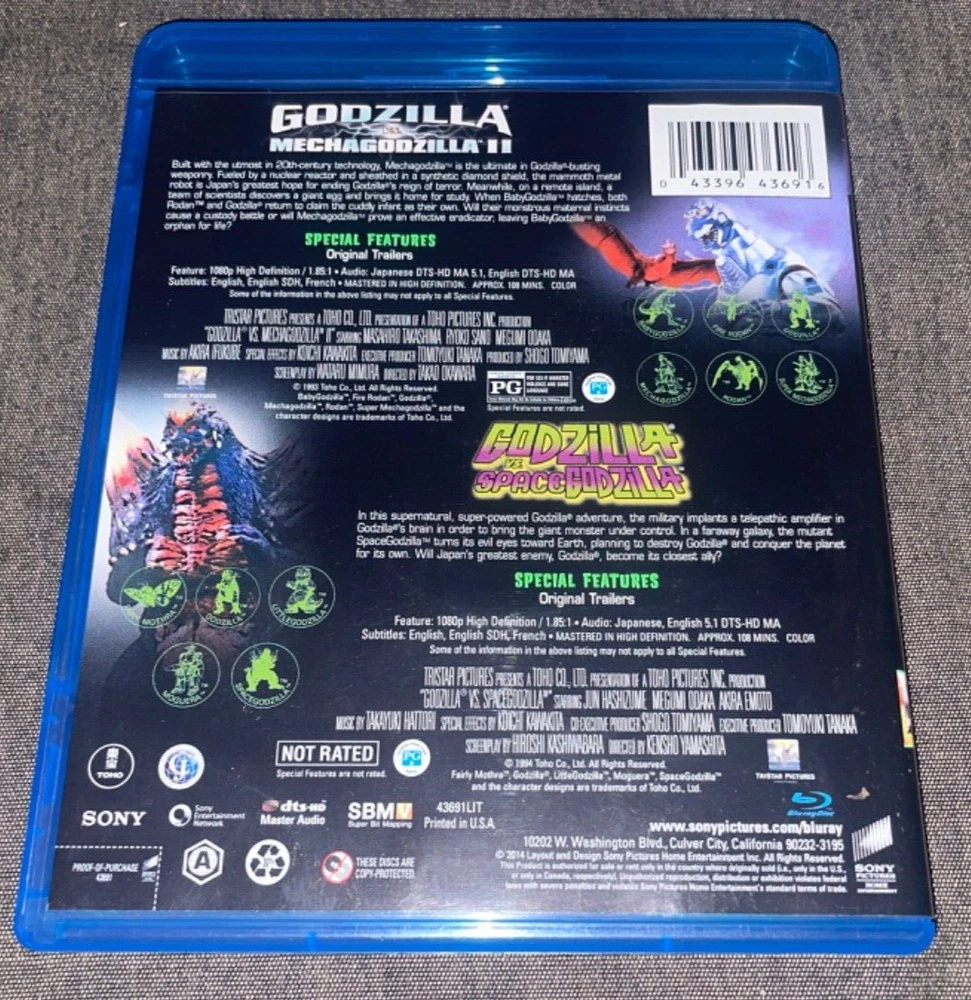Item: The toho Godzilla Collection: Mechagodzilla II / Spacegodzilla Label: Sony (2-disc set with insert) UPC: 043396436916 Director: Takao Okawara / Kensho Yamashita Country of release: USA (2014) Condition: Near mint Postage (tracking number): E verywhere: $15.00 Combined shipping possible, overpaid postage will be refunded. European sales include 21% Dutch VAT.