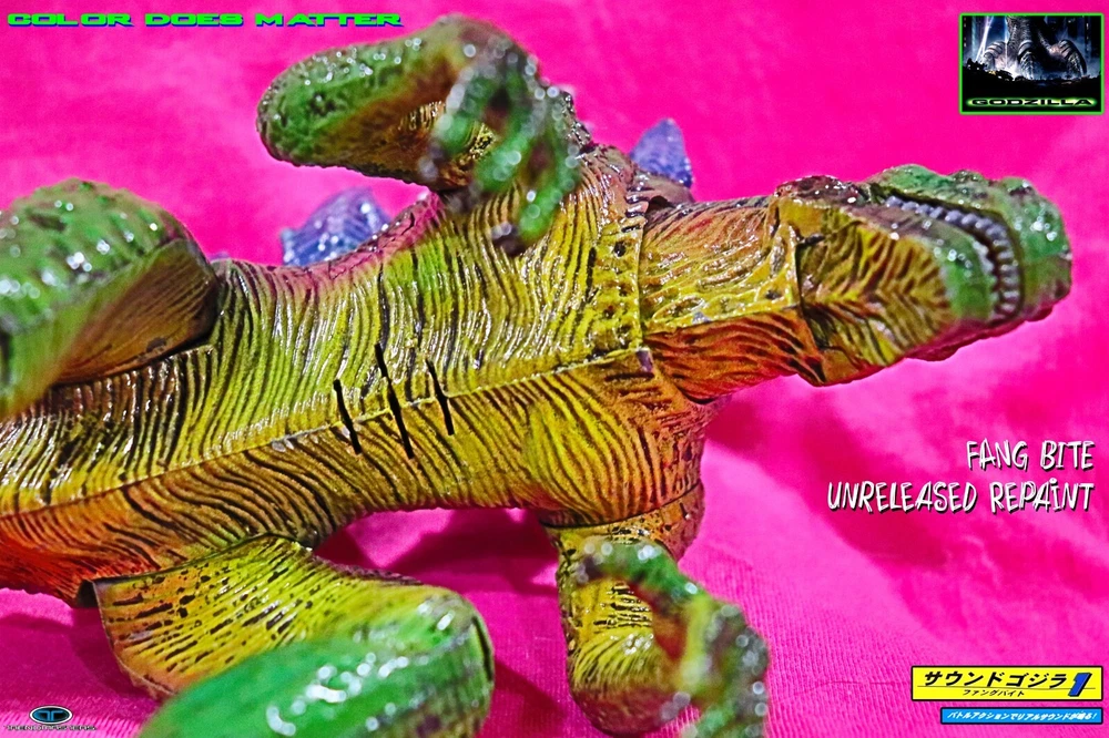 Extremely RARE Unreleased Godzilla 1998 Fang Bite REPAINT PROTOTYPE from TRENDMASTERS, as part of the cancelled 2nd Year Series!! This came directly from an ex-TRENDMASTERS Employee, so straight from the source and completely authentic. Don't be fooled by any 'customs' of this color listed as Prototype Replica's... Because those are NOT Prototypes. Just Hand-Painted Customs. Nothing more. This here is the REAL DEAL with NO 3D Printing or customizing. This is a ONE OF A KIND in these colors!! Condition is used as shown. Has some paint wear all over but still looks amazing!! Please see the 10 photos for the condition etc... Any questions, please ask before bidding. This is a RARE opportunity for someone, seeing that these figures do have a Fan Base from this incredible Toy Line that was meant to spawn a 2nd Series. *SOLD AS IS*. Shipping will be $100.00 to Canada and the USA with tracking and insurance. NO INTERNATIONAL SHIPPING. You also MUST HAVE FEEDBACK to bid. Payment is due immediately with auction end.