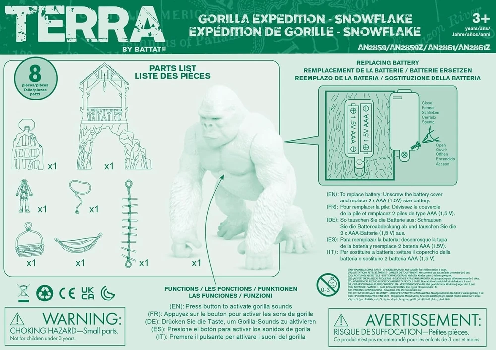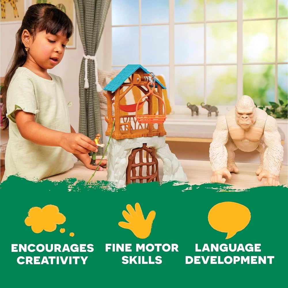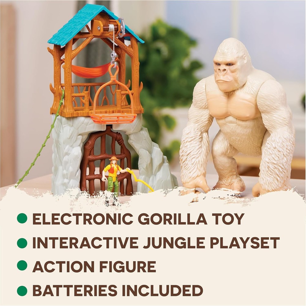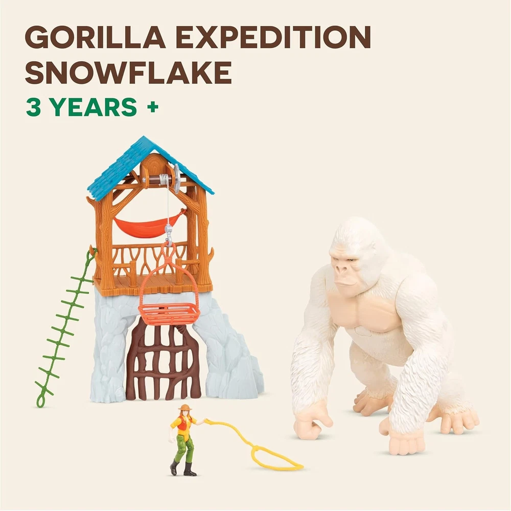 Terra by Battat – Playset for Figurines – Electronic Toy Gorilla – Jungle Playset – Animal Toys – 3 Years + – Gorilla Expedition Snowflake Product Details Product Dimensions: 13.5 x 9.5 x 7.5 inches Item Weight: 3.06 pounds Country of Origin: China Item model number: Gorilla Expedition - Snowflake Manufacturer recommended age: 36 months - 8 years Batteries: 2 AAA batteries required. (included) Release date: November 1, 2021 Manufacturer: Branford Ltd. Gorilla Playset: Electronic playset with gorilla figurine and rescue center playhouse. Includes: Rescue center with hammock, action figure, ladder and more! Features: Gorilla makes realistic sounds and basket can be raised and lowered. Batteries: 3 x AAA batteries included with gorilla toy for cool sound effects. Recommended Age: Suitable for kids aged 3 and over. Welcome to the jungle! You are in charge of this rescue mission. Head out on your expedition and bring along your partner. Don't forget the lasso - in case you spot the oh-so-rare Snowflake gorilla. Do you hear that? It sounds like a gorilla. There he is and it looks like he needs your help! Bring him back to your rescue center. You will have everything you need. Take the ladder to the top floor and look out from the top post. There is a hammock to relax after your big mission. This Gorilla Expedition set includes an action figure, Snowflake the gorilla, a rescue center, a rope ladder and more! The electronic gorilla includes 3 X AAA batteries and makes realistic sounds. Recommended for children 3 years old and up.