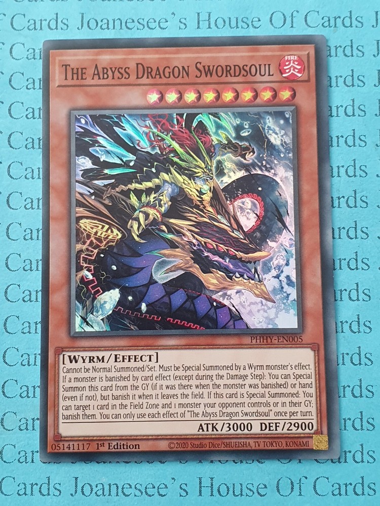 This is the Super Rare Foil Fire Wyrm The Abyss Dragon Swordsoul PHHY-EN005 1st Edition English Mint/NMint Condition Totally Original Konami (or your money back!) I will deliver in safe packaging to keep it in perfect condition. Ideal for players and collectors alike. Check out my other items! I will combine postage costs for multiple purchases. Sign up for my email newsletters by adding my eBay Shop to your favourites