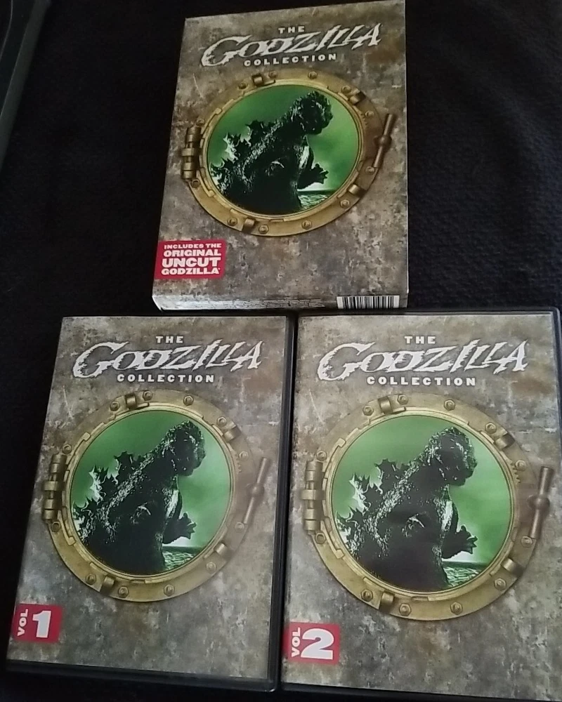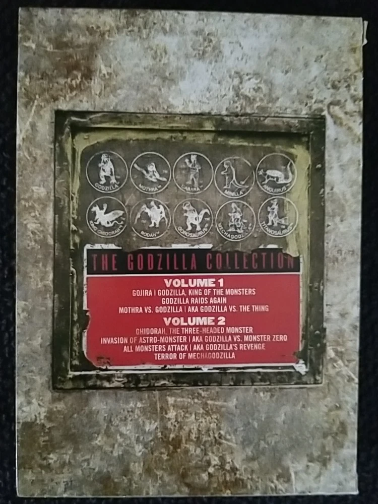 The Godzilla Collection on DVD, 2011. Includes the original uncut Godzilla. Minor tear on the spine cover. See photo.
