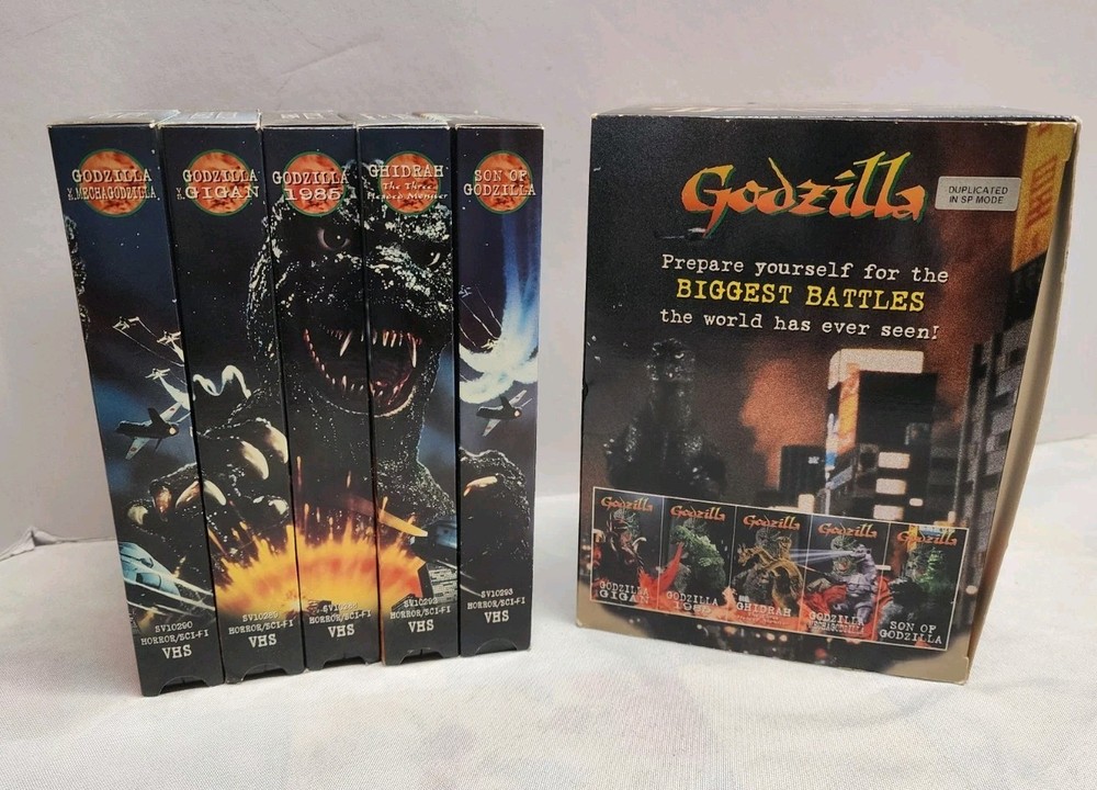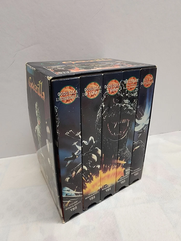 Pre-owned some were and tear to the box look at pictures overall great condition This is a fantastic collection of VHS tapes featuring the legendary Godzilla 5-pack set. The set includes the movies Gigan, Mecha-Godzilla, Ghidrah, Son of Godzilla, and King Kong vs. Godzilla. All of the movies are in NTSC format and have an NR (Not Rated) rating. This set is perfect for fans of sci-fi and fantasy movies, and anyone who loves Godzilla movies. The collection was released in 1997 and is in excellent condition. The tapes have been carefully stored and are ready to be enjoyed. This set is a great addition to any movie collection and will provide hours of entertainment.