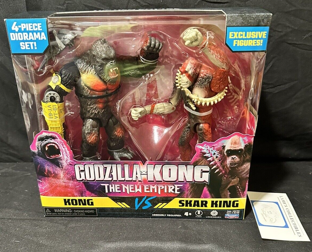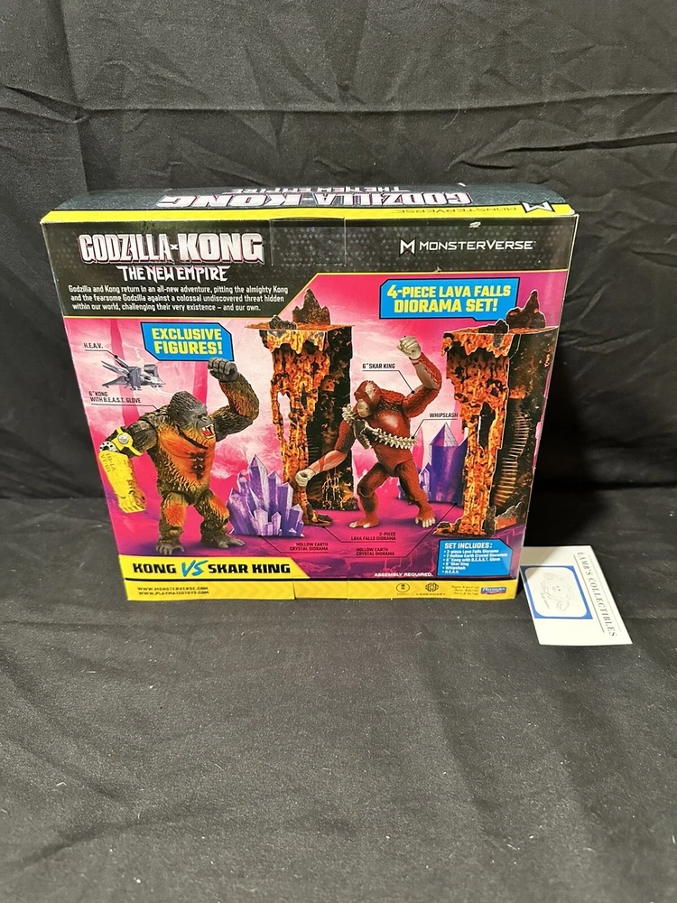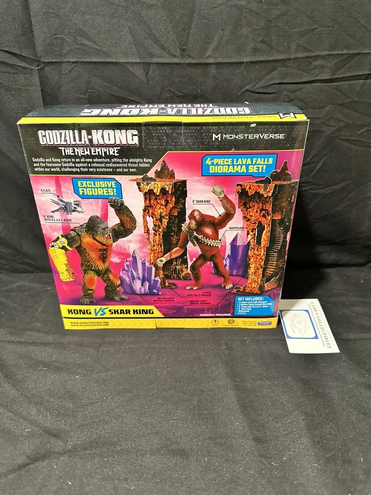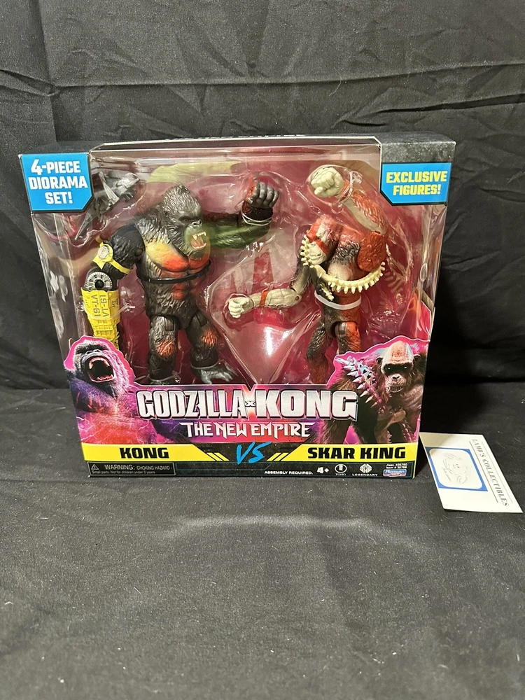 The New Empire Godzilla x Kong Monsterverse Kong vs Skar 6" action figures 2024 set includes: 6" Skar action figure with whip 6" Kong action figure wearing B.E.A.S.T glove 2" Heav vehicle 4 card board diorama pieces Please review all photos, policies & contact us with any questions. Thank You! Lamb’s Collectibles I nternational Buyers Import duties, taxes, & charges are not included in item price or shipping cost & are buyer's responsibility. Customers report packages arrive safely & quickly.