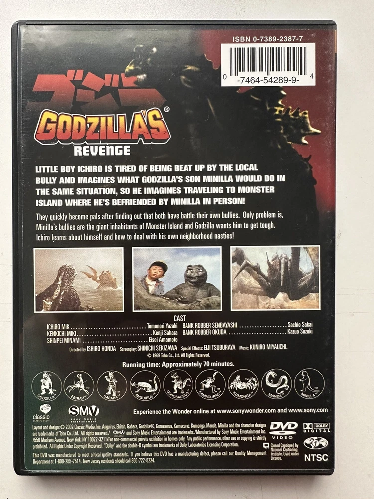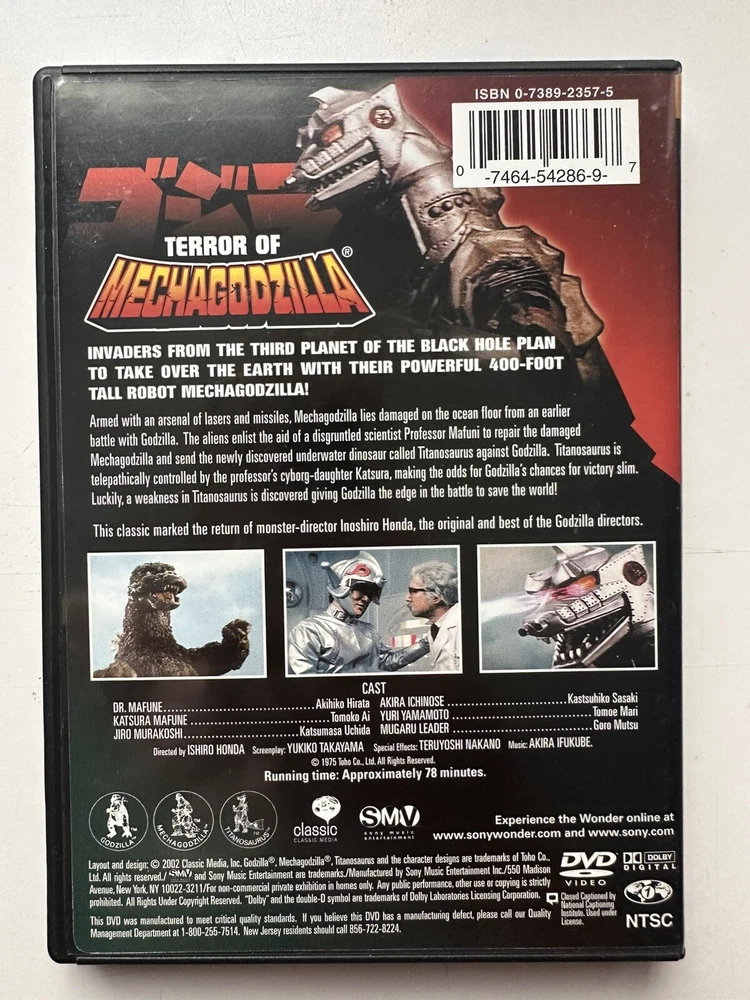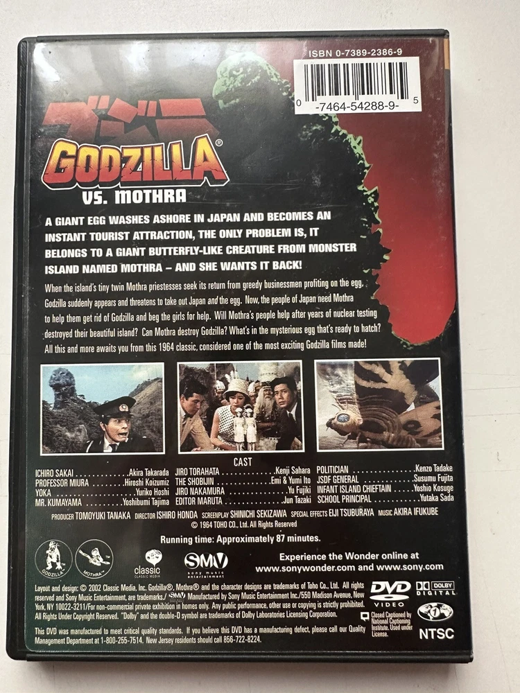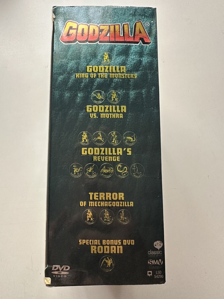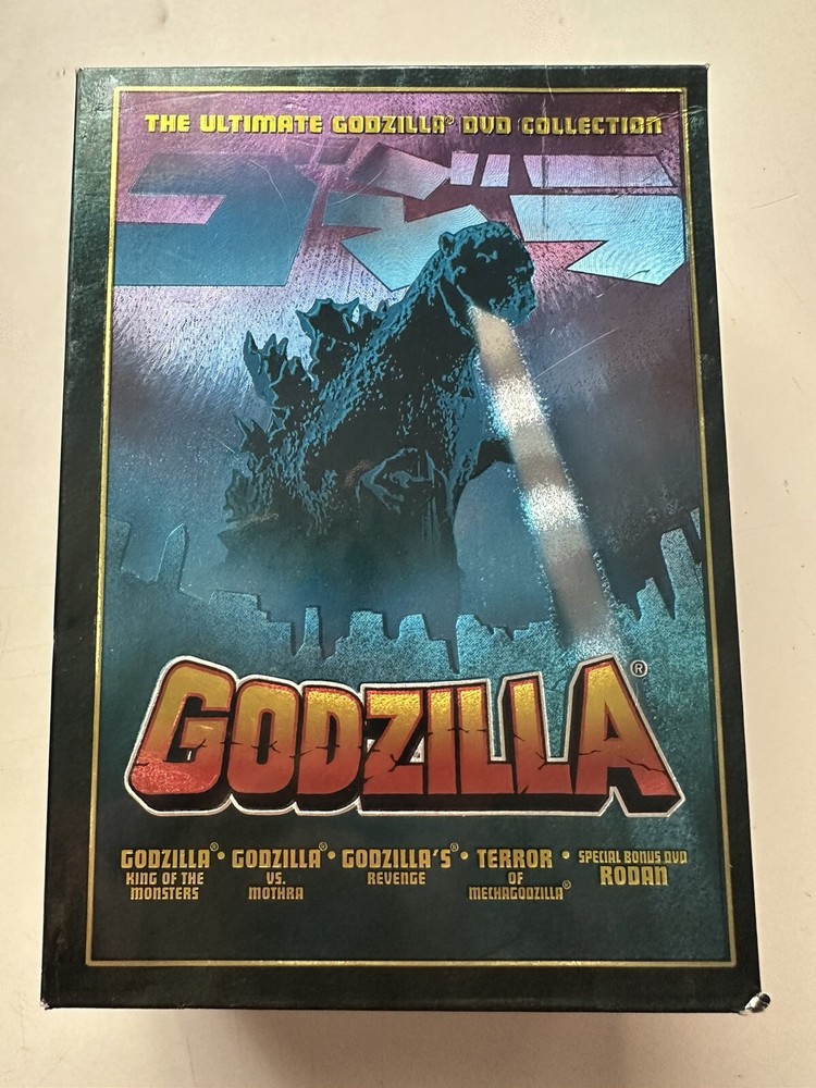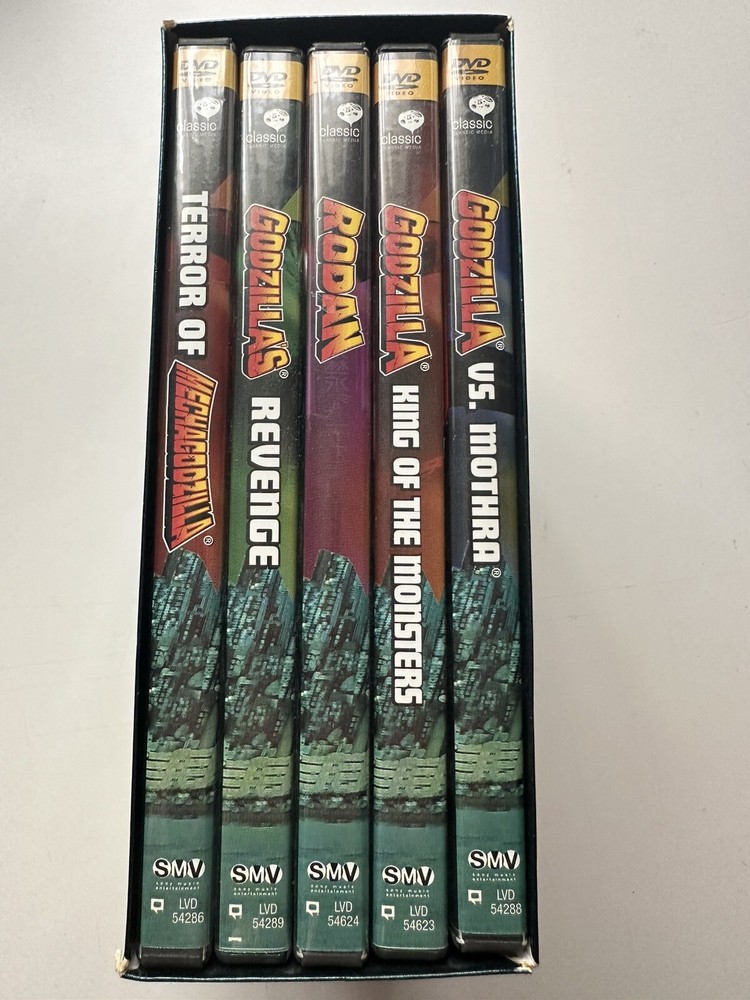 The Ultimate Godzilla DVD Collection is a 5-disc set released in 2002, featuring five classic Godzilla movies. The collection stars Raymond Burr and falls under the action and adventure genre. The movies are in DVD format and have a rating of NR. Godzilla Vs. Mothra Godzilla King of Monsters Godzilla’s Revenge Rodan Terror of Mechagodzilla See photos for outer box conditions. The DVD’s are in new condition. This is from a private collection, one owner.