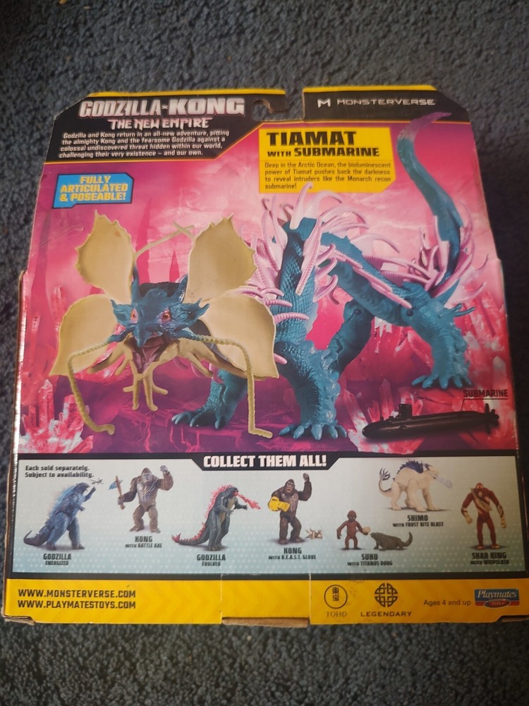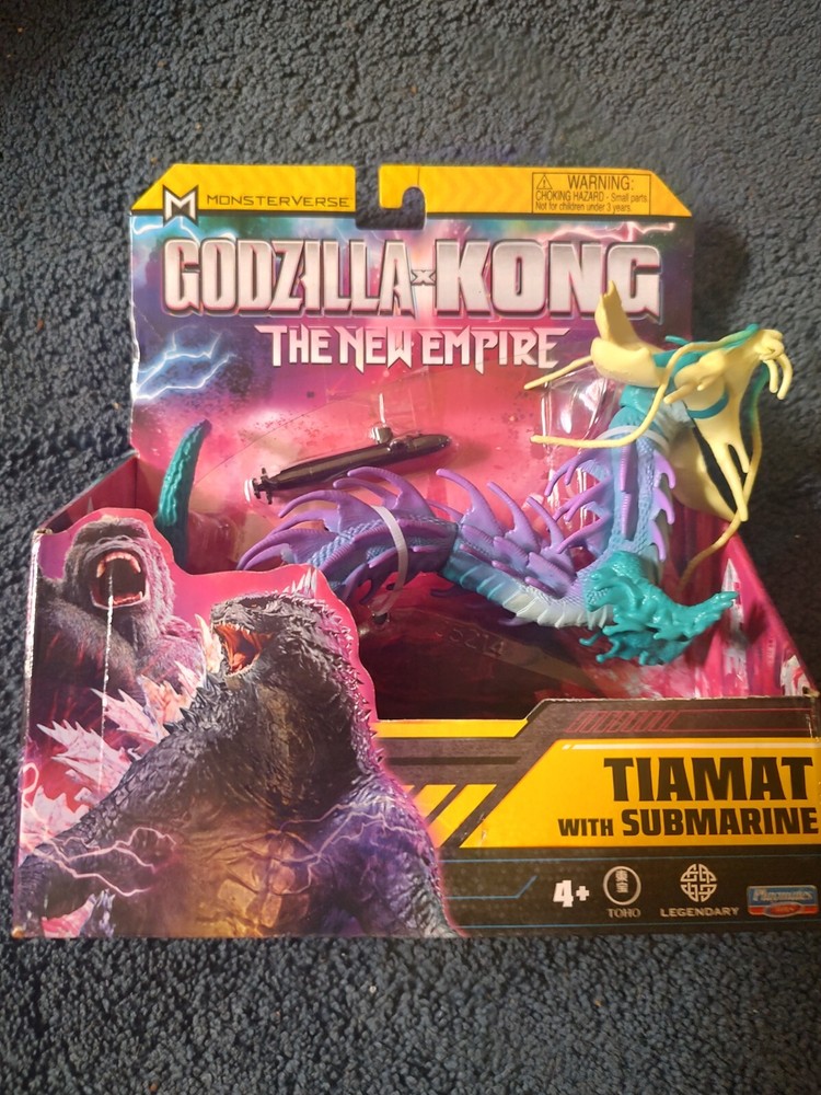 "Tiamat With Submarine" Action Figure from Godzilla x Kong : The New Empire. Figure stands approximately 6 inches tall, and is mint in original box. Produced in 2024 by Playmates Toys. Please see phot...