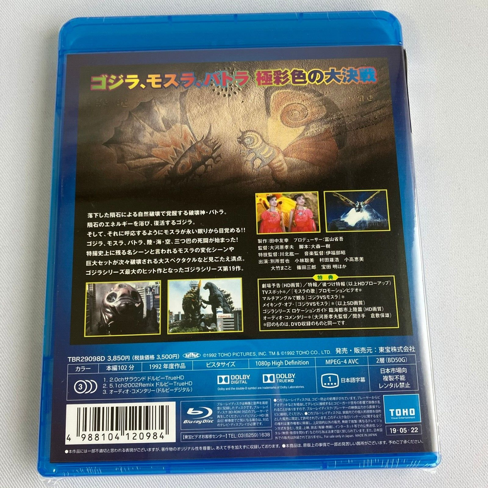 -----(Feature)----- Condition : New Aspect ratio: 1.78: 1 Language: Japanese Product size: 25 x 2.2 x 18 cm; 80 g EAN: 4988104120984 Director: Takao Okawara Media format: Dolby, wide screen Time: 1 hour 42 minutes Release date: 2019/5/22 Cast: Tetsuya Bessho, Satomi Kobayashi, Takehiro Murata Subtitles:: Japanese Distributor: Toho ASIN: B07PX5VRFL Country of origin: Japan Number of discs: 1 [Video benefits] ● Theater notice (HD image quality) ● Special news ● Retrofit special news (HD blow-up) ● TV spot * ● “Mosla song” promotion video * ● "Godzilla VS Mothra" to watch from multiple angles * ● Making of "Godzilla VS Mothra" * (SD image quality) ● Godzilla Series Location Guide Landing in a seaside city (HD image quality) ● Audio commentary * (Director Takao Okawara / Listener Yasuo Kurashiki) * Marks are the same as those recorded on DVD. The 19th series of the masterpiece special effects movie "Godzilla" depicting the fierce battle between "Godzilla" and the black Mothra "Battra" who has the instinct to destroy "Godzilla" and "Mothra". -----(Important)----- Import duties, taxes are the buyer's responsibility. Import duties, taxes, and charges are not included in the item price or shipping cost. These charges are the buyer's responsibility. Please check with your country's customs office to determine what these additional costs will be prior to buying.