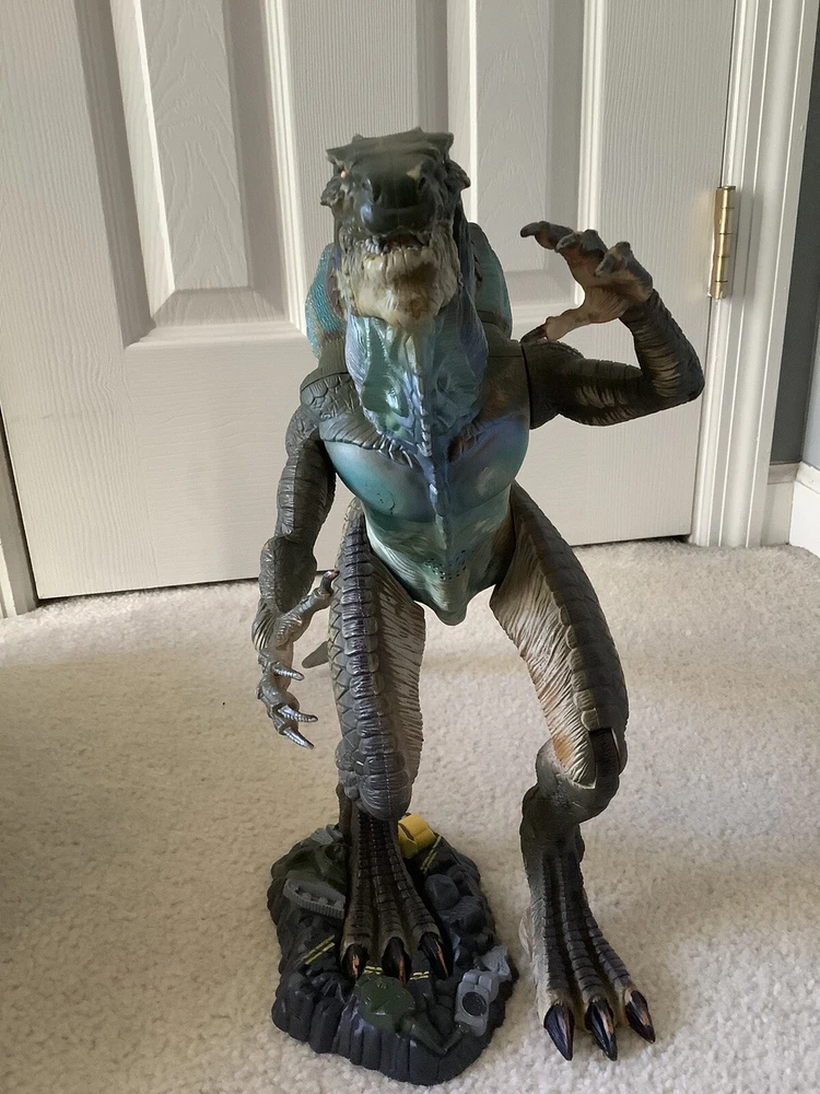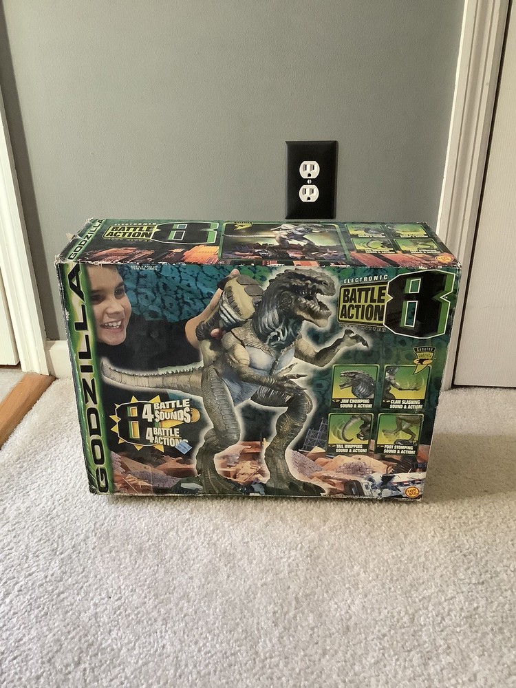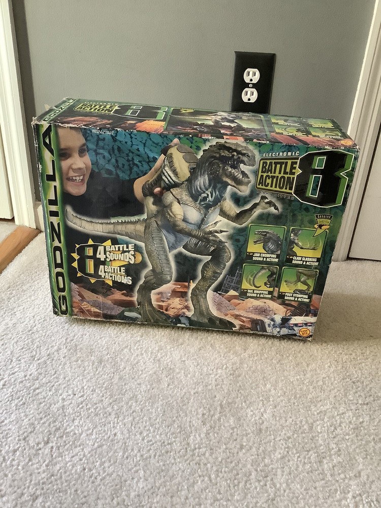 This toy I bought years ago as a somewhat gag gift for my husband. I bought it used in the condition I am selling it in. It has been stored in the box in my house without the batteries in it. I have decided to list it since it’s just sitting around. We put batteries in before listing and it’s working. It seems to be a little but buggy. The sound goes off while it’s not being touched and the leg can get stuck in the up right position. Other then that it’s in good vintage condition. No returns. Final sale. Send offers.