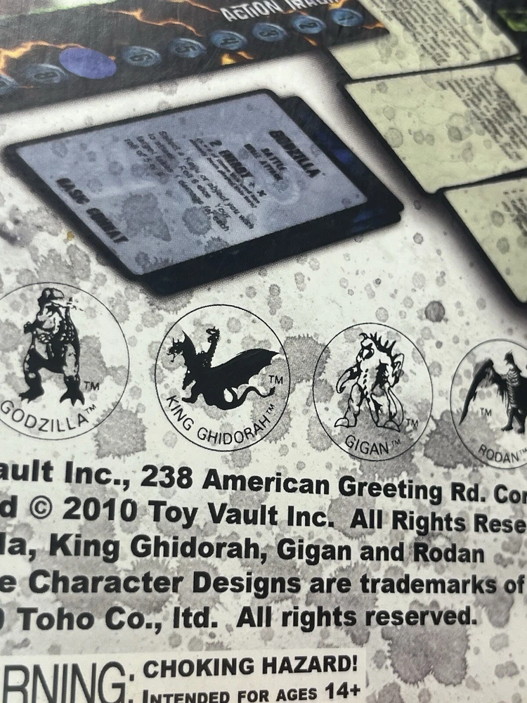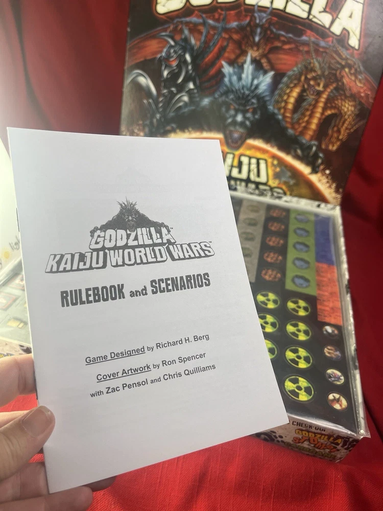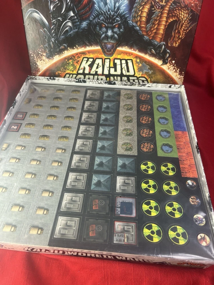 The Toy Vault board game Godzilla - Kaiju World Wars is a strategy and war game designed for 2 players, with a recommended age range of 14+. This boxed game, released in 2011, immerses players in a war-themed world where they must strategize and battle it out with their Kaiju creatures. Perfect for fans of Godzilla and tabletop games, this game offers an engaging and competitive experience for players looking to test their tactical skills in a captivating setting. this game is in beautiful condition. The board is pristine and the pieces are punched. Unfortunately someone removed the figures so it is priced accordingly. You could 3-D print your own figures of Godzilla king Jaron, Gigan, and Rodan and save a grip of cash. Other than the missing figures this game is in beautiful condition.