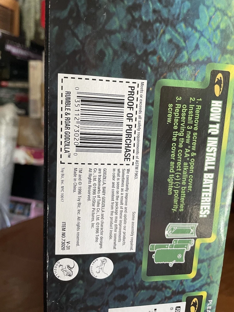 This item is unopened, never displayed. Mint condition, “Try Me” button is not working (probably dead battery) , The box is pretty beat up ( scratched, dents, faded colors. Ink stains etc). Please look at the pictures. No missing pieces. . No missing pieces. Please be aware that you will have to pay all the taxes, customs fees and any other fees that my apply according to your county's laws.