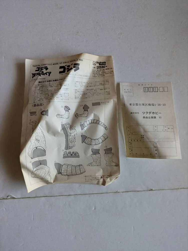 Description Thank you for visiting our auction!! Language: Japanese Condition: Used *Please check pictures well. If you have any questions please feel free to message me!! Shipping ①Payment It is compatible with Payoneer. Payment is due within 5 days of the auction end. We will ship the item within 3~5 business days after your payment clears. ②Shipping ☆Free shipping on purchases of 2 or more!! To USA Free shipping (Expedited shipping) We send product by EMS or Fedex with tracking (It will arrive 3~5 business days to USA) To International Free Shipping (Standard Shipping) We send product by E-Packet or EMS or FEDEX with tracking (It will arrive 3~5days or 1~4 weeks to World wide) *We think almost product will arrive soon. ※Caution ・Shipping is available from Monday to Friday. (Weekends are not available because post office is closed.) ・We can't send a product : US Protectorates, APO/FPO, Africa, Israel, Italy, Israel, Mexico, South America, PO Box (Due to postal problems) International Buyers - Please Note: ①Return When there is a different problem from the indicated contents, please tell us about it within 60days. We accept returns only if items did not match the description. Seller pays return shipping. We support any country. ②Import duties, taxes, and charges are not included in the item price or shipping cost. These charges are the buyer's responsibility. Please check with your country's customs office to determine what these additional costs will be prior to bidding or buying. Thank you for your understanding. 1995 Godzilla PVC Model Kit Godzilla vs. Destroy Atsukuda Hobby This is a plastic model of Godzilla from 1995 Godzilla vs. Destroyah. The condition is unopened. There are stains and wrinkles on the parts diagram. There are scratches and dirt on the outer box. This is an old item. Please refrain from purchasing if you are concerned about its condition.