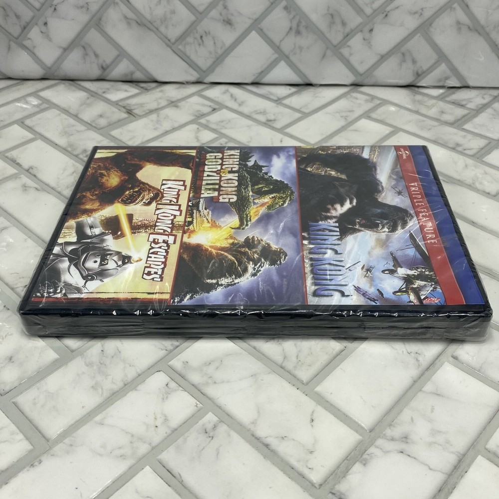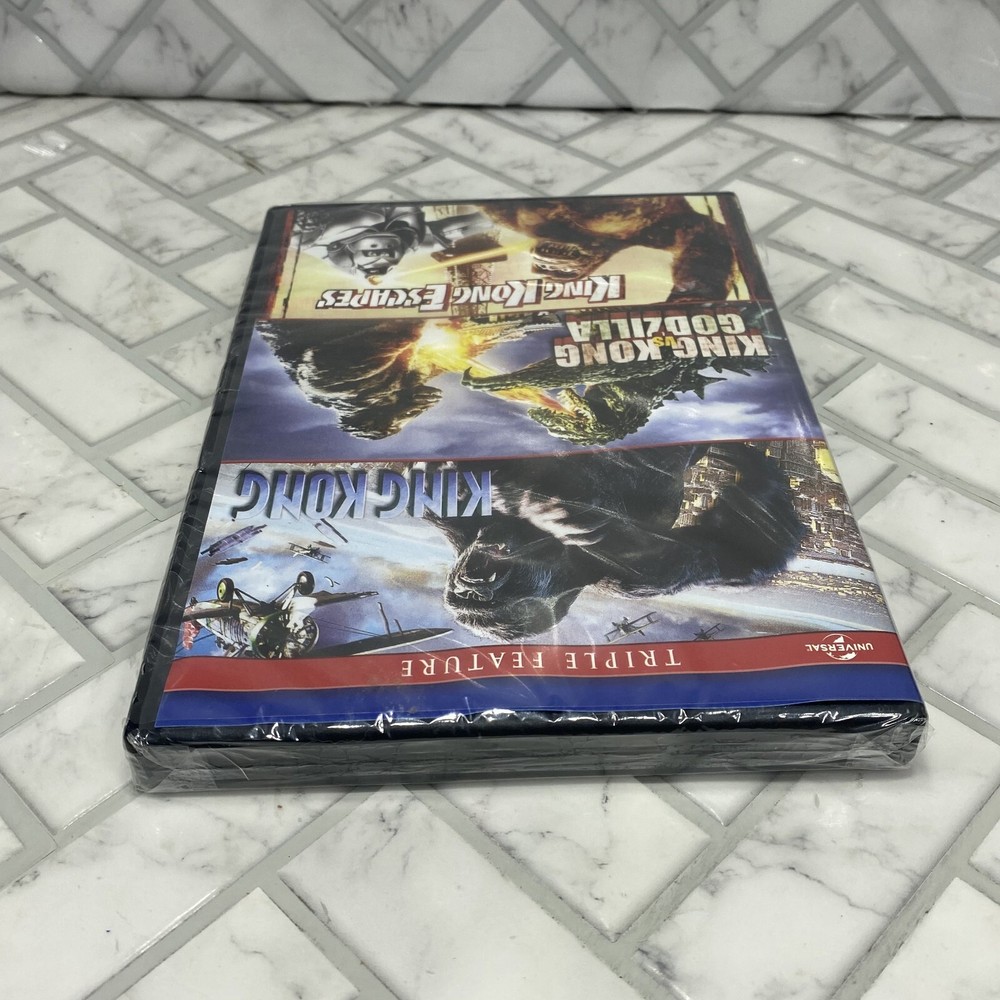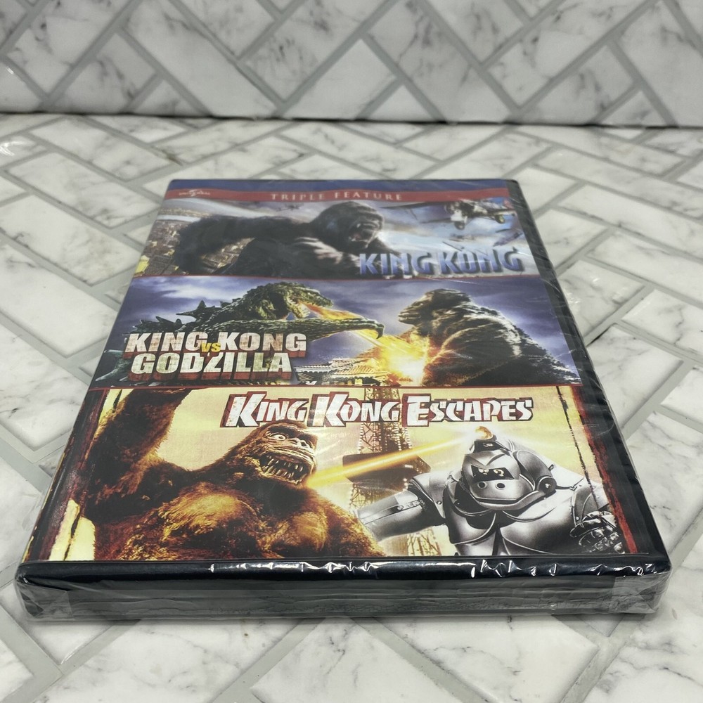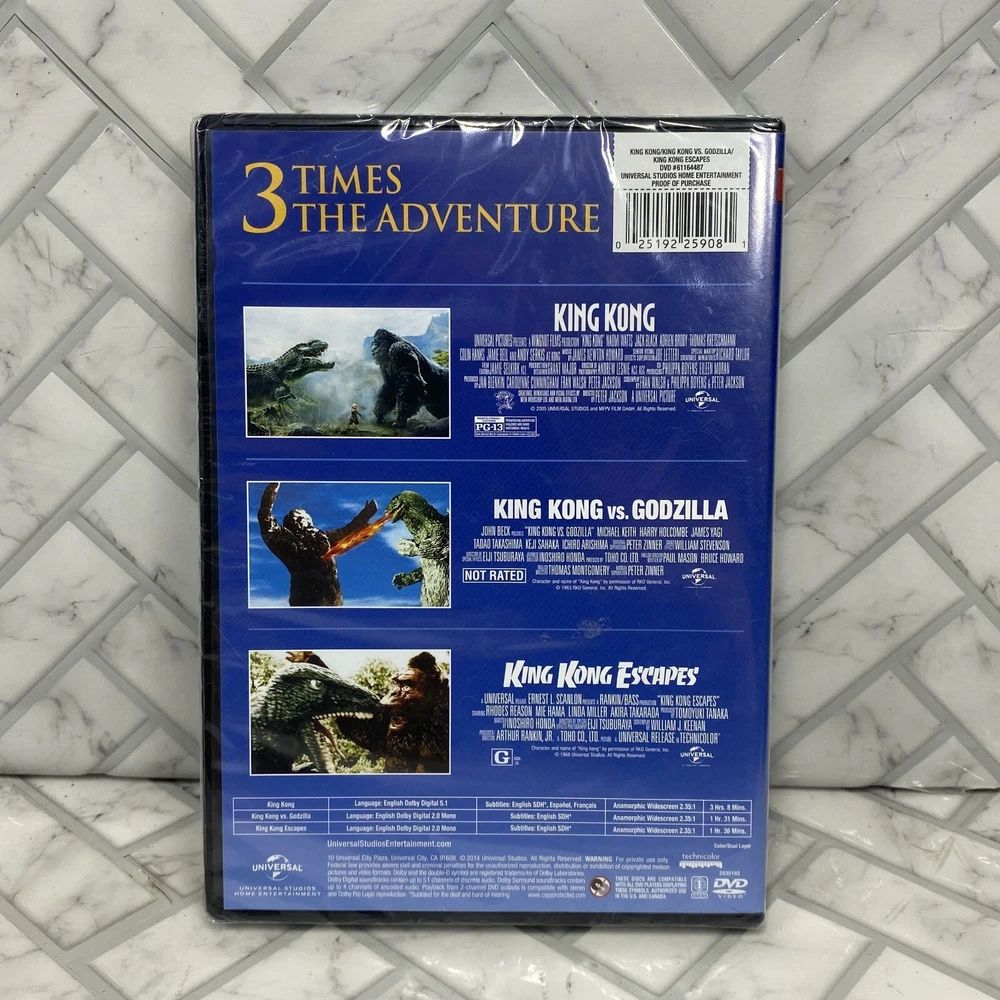 Universal King Kong, King Kong vs Godzilla, King Kong Escapes 3-in-1 Movies NEW The product is a 3-in-1 box set featuring three classic King Kong movies: "King Kong" (2005), "King Kong vs Godzilla" (1962), and "King Kong Escapes" (1942). Directed by Peter Jackson and with music by James Newton Howard, the box set includes subtitles in English, French, and Spanish. Starring actors like Andy Serkis, Jack Black, and Adrien Brody, this collection offers an action-packed viewing experience filled with adventure, horror, drama, and supernatural elements. Perfect for fans of B-Movies and cult films, this DVD box set is a must-have for any movie enthusiast.